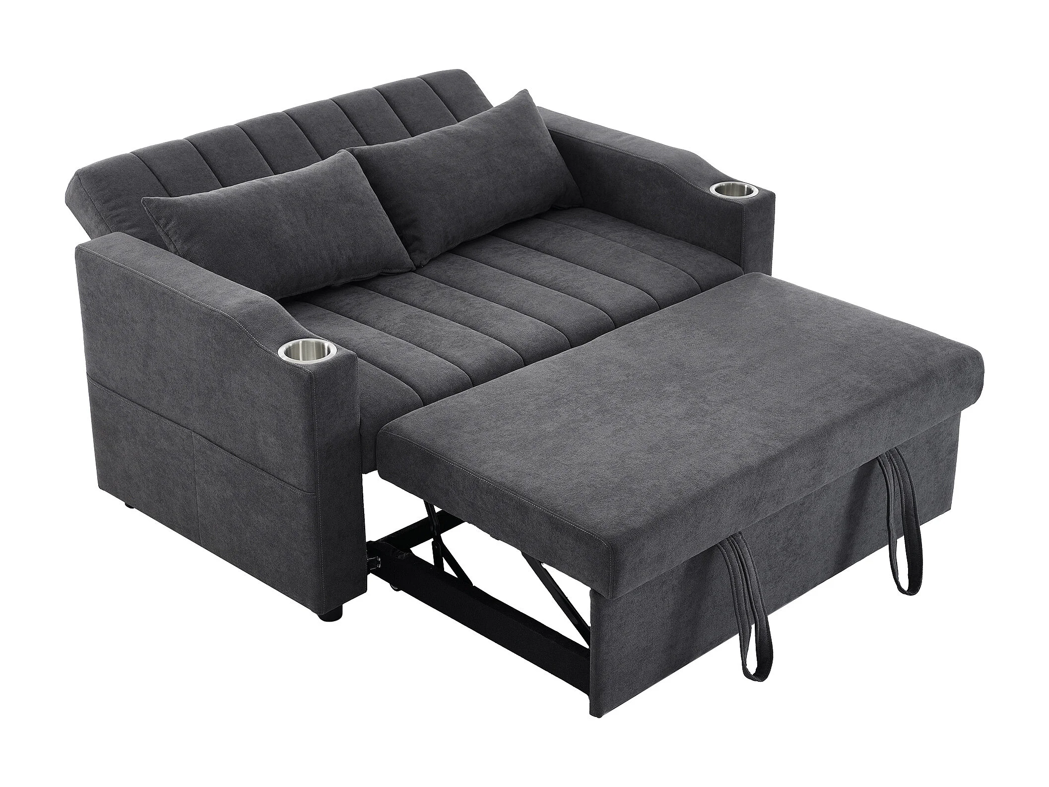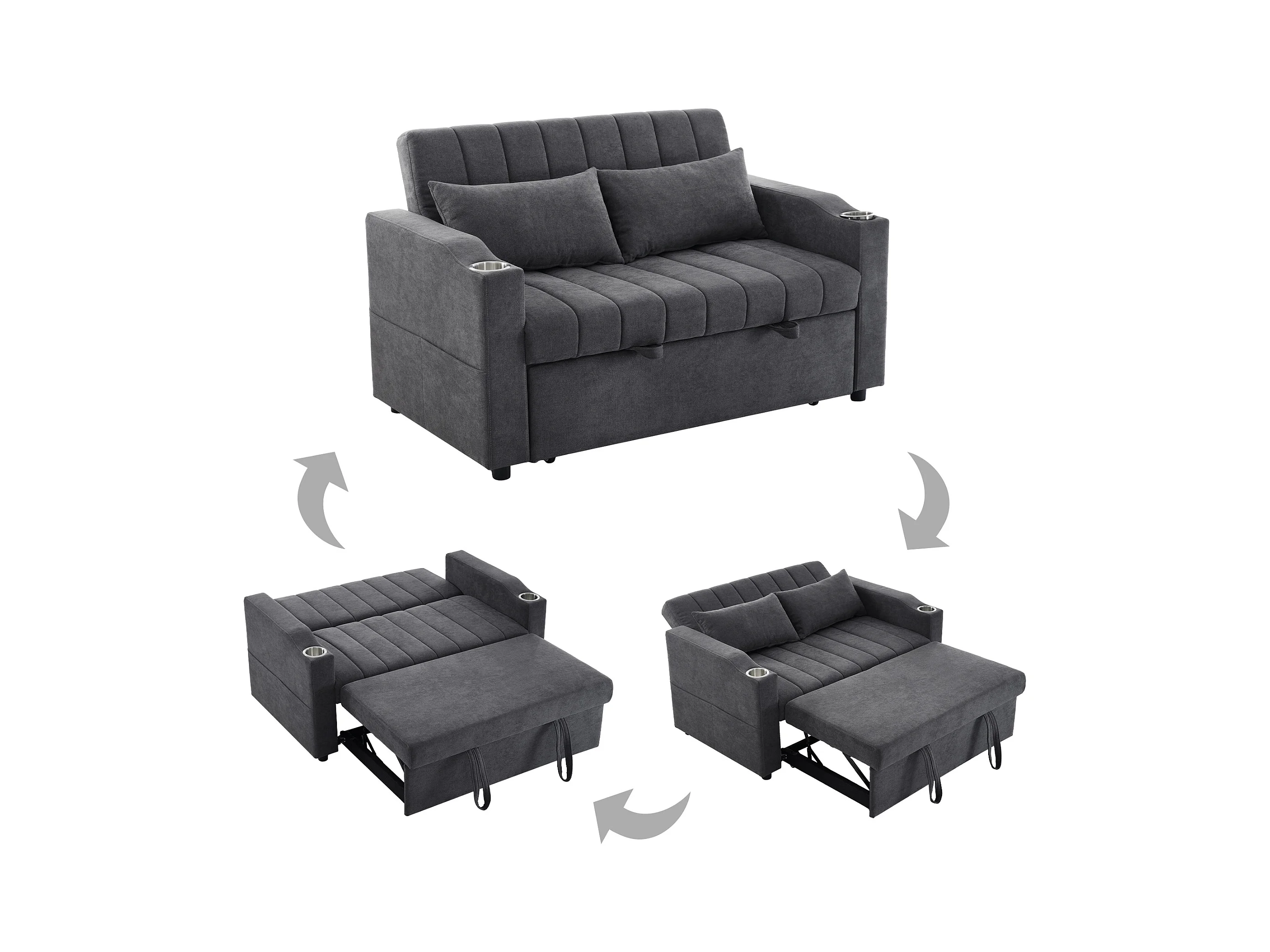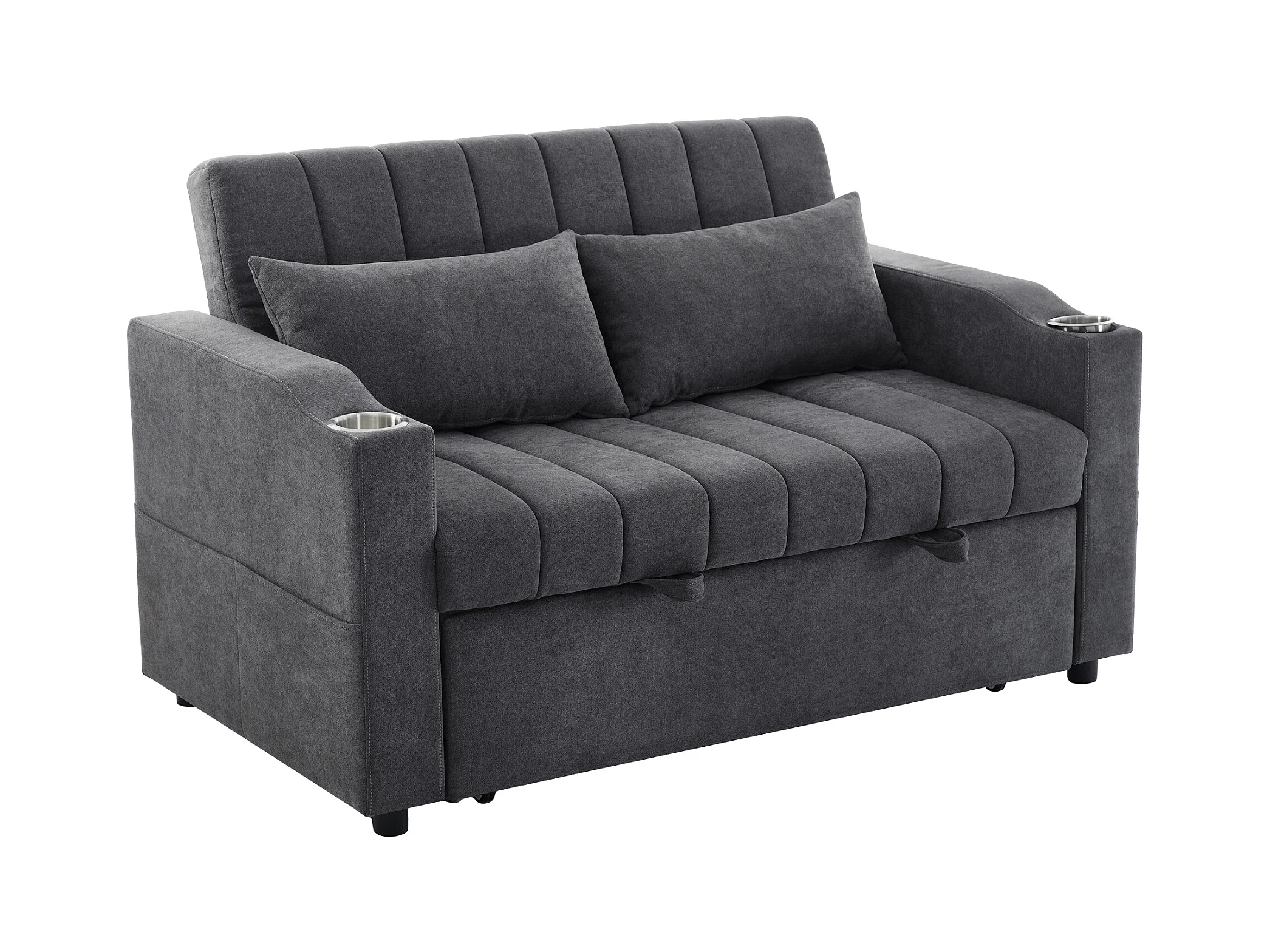 Sofá plegable de 2 plazas, terciopelo gris, con respaldo ajustable y portavasos, para salón o dormitorio