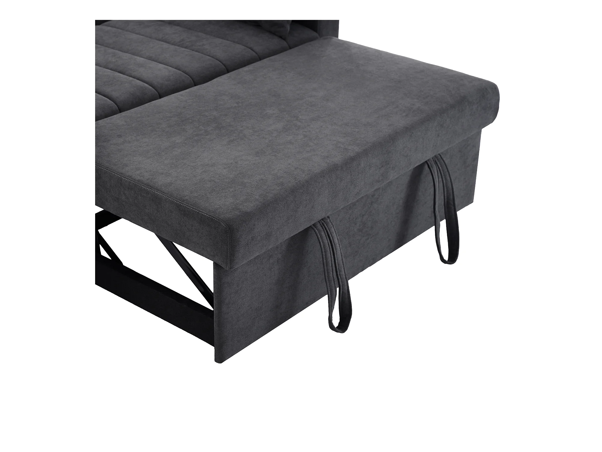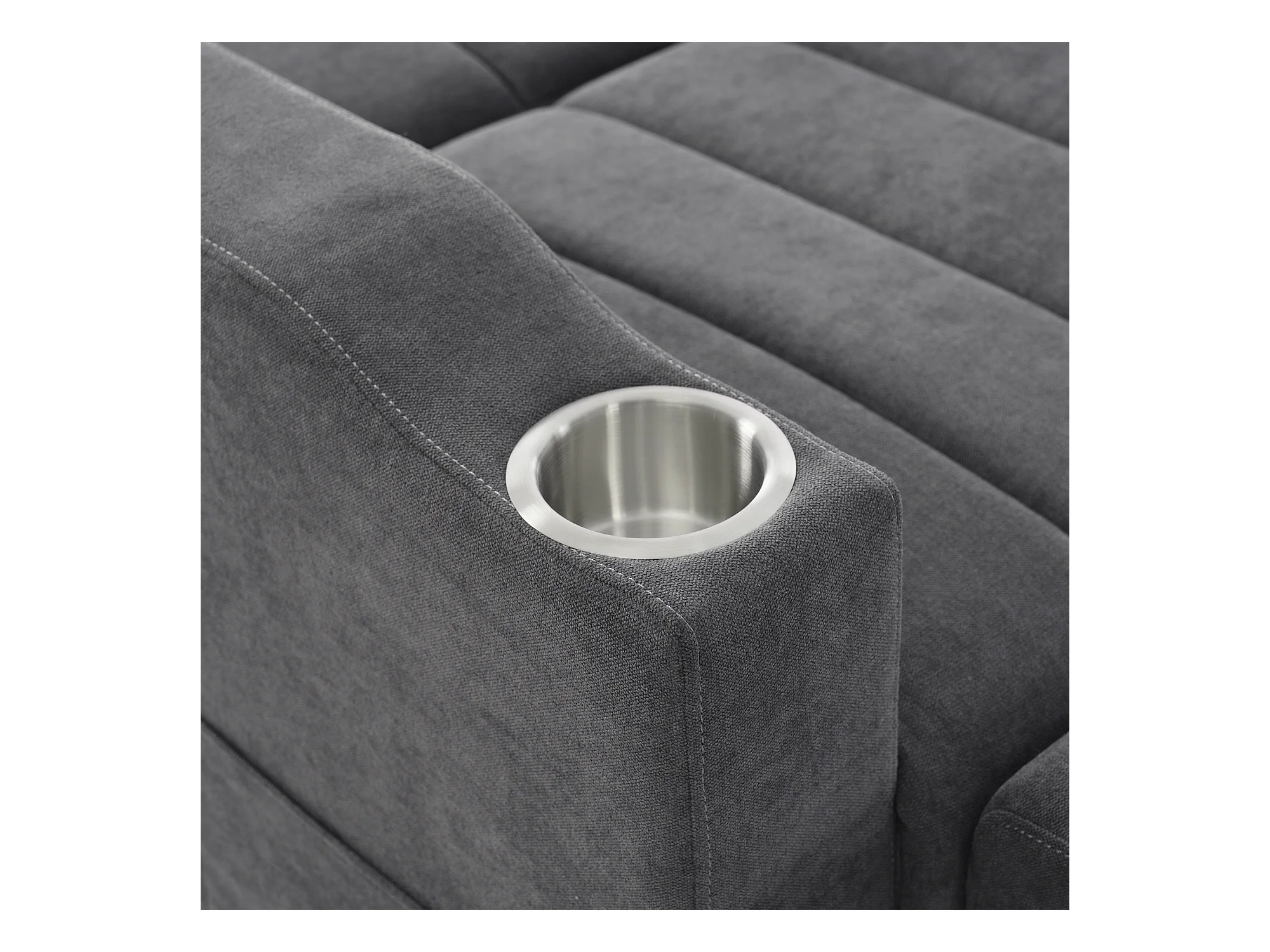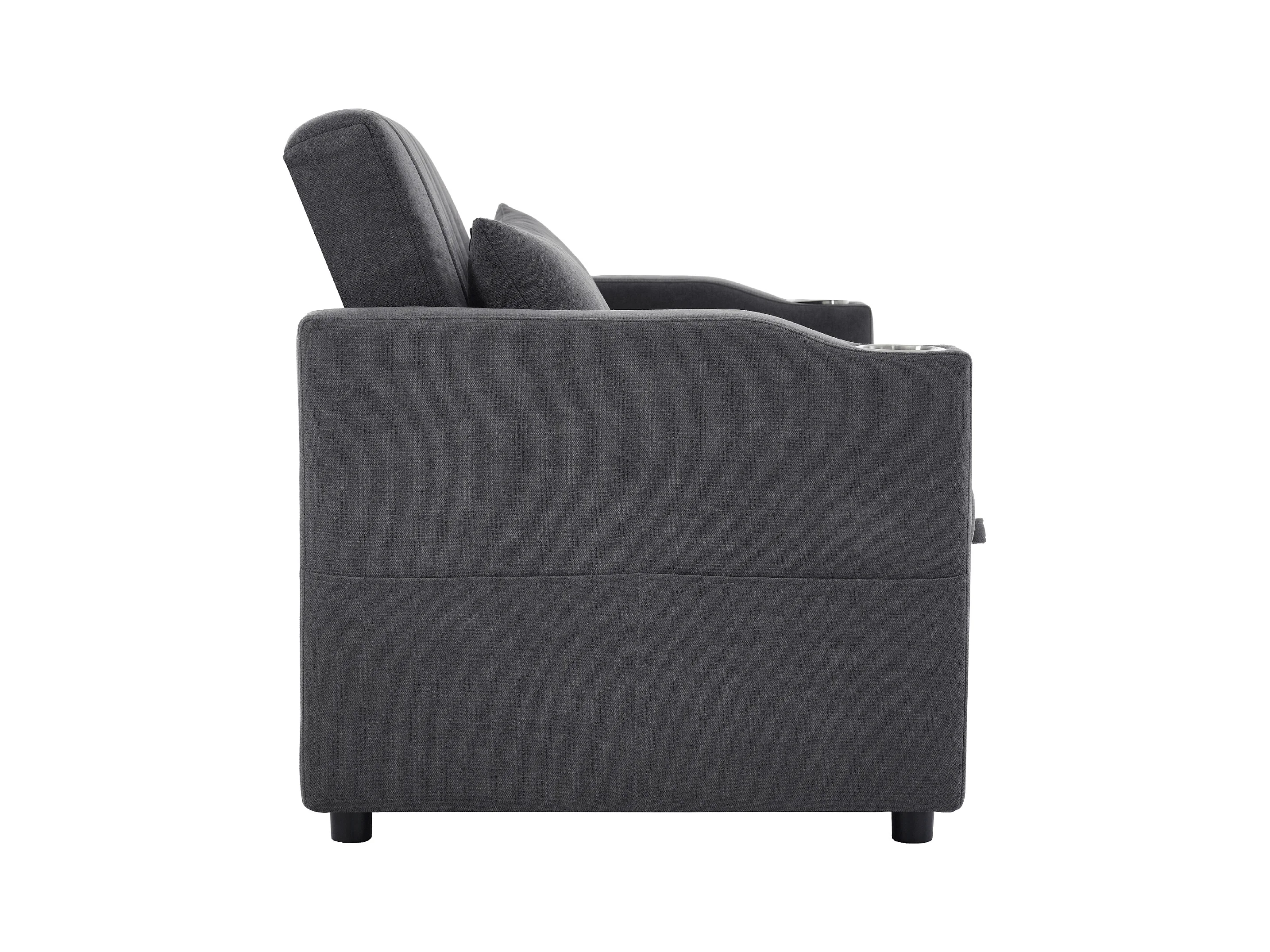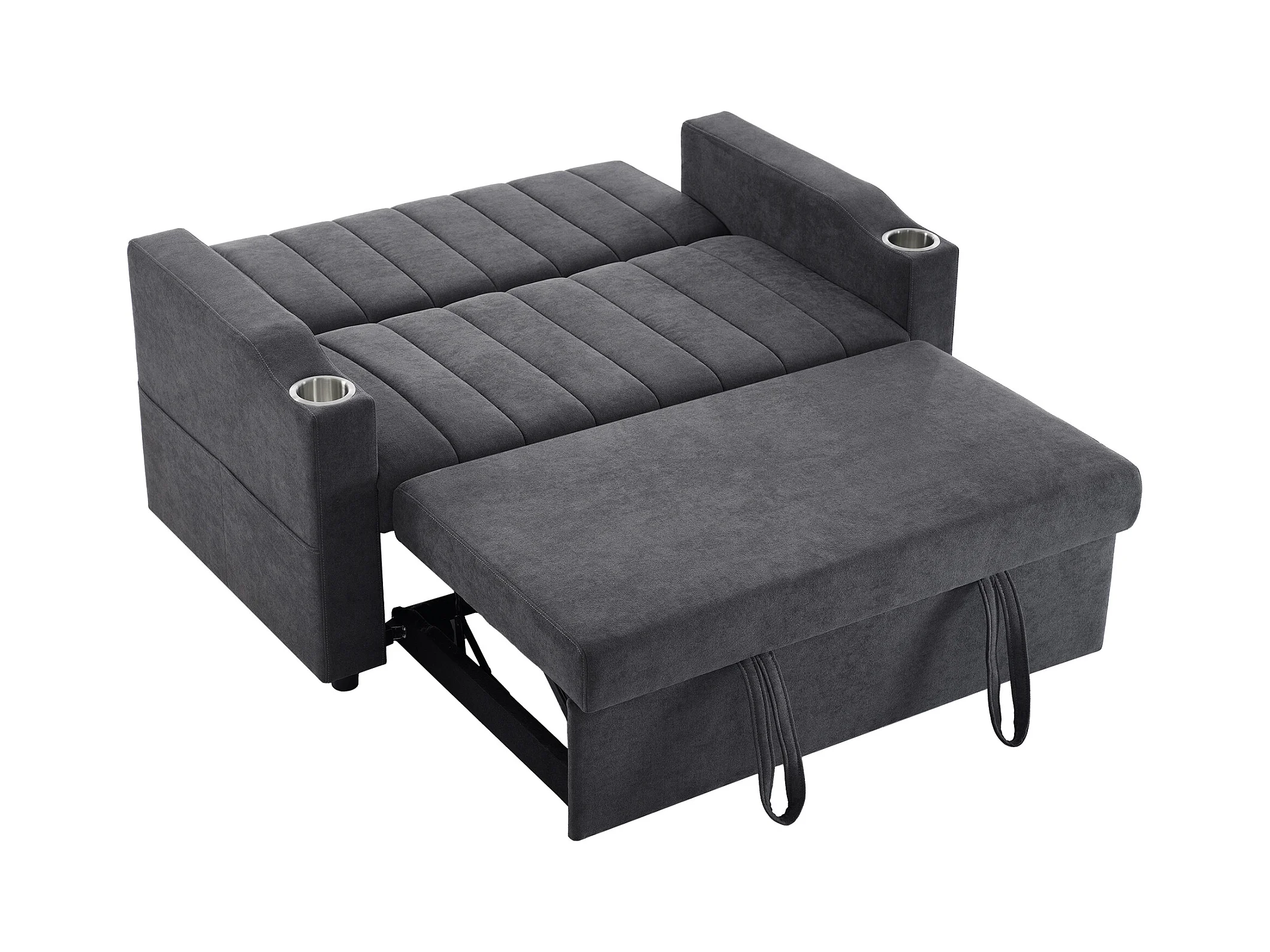 Sofá plegable de 2 plazas, terciopelo gris, con respaldo ajustable y portavasos, para salón o dormitorio