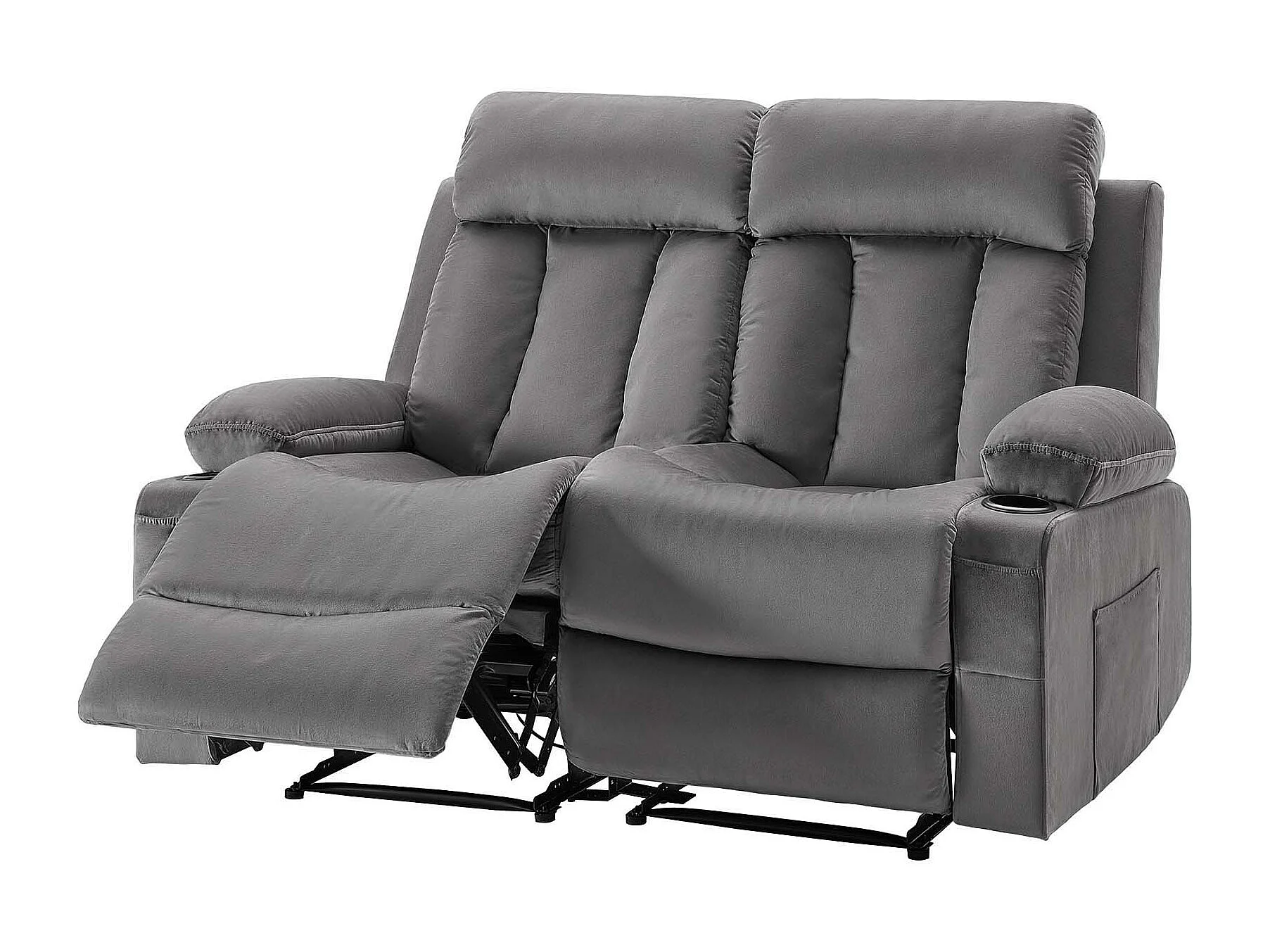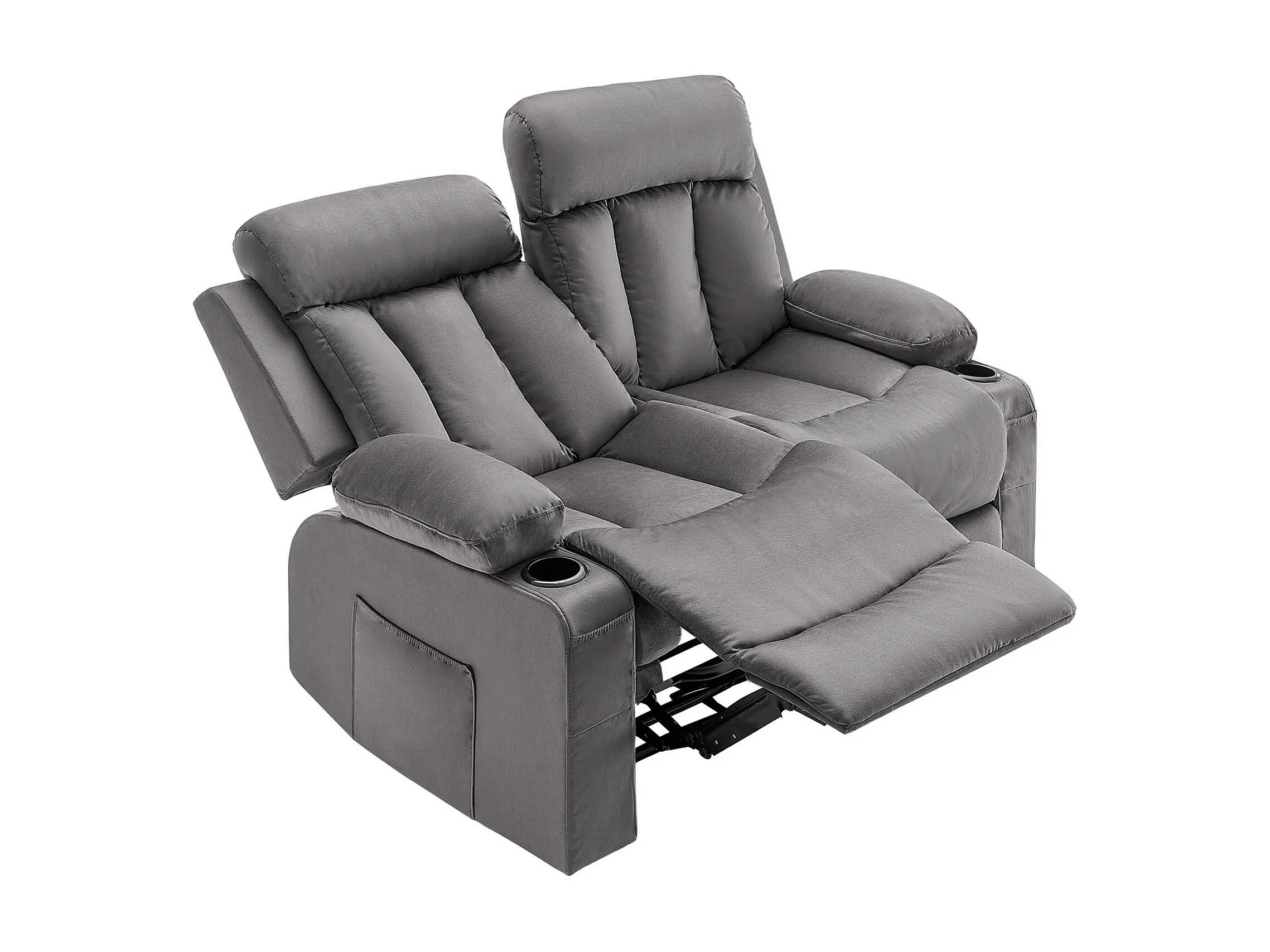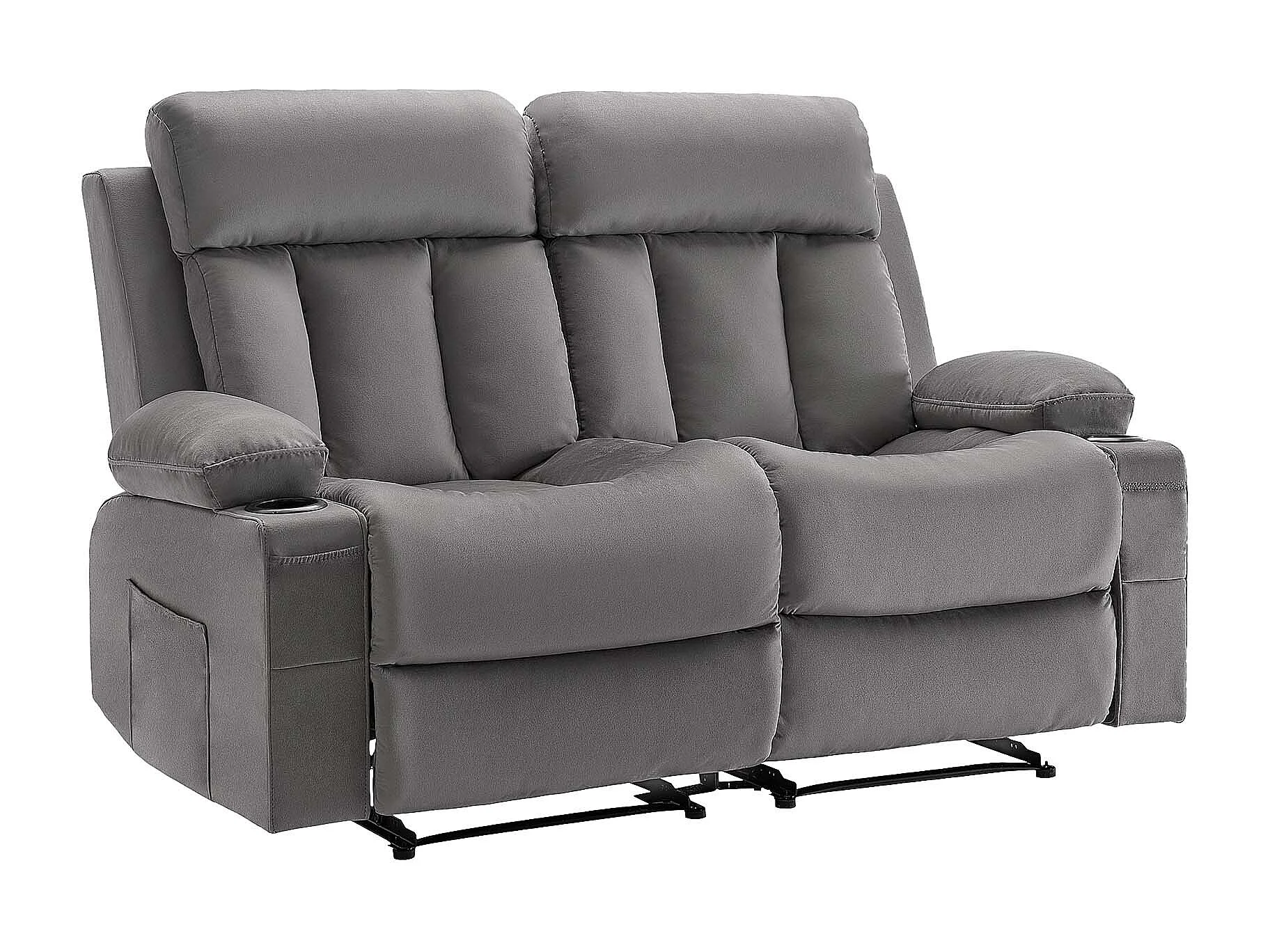 Sofá Reclinable Eléctrico SucceBuy 2 Plazas, Sofá Reclinable con Calefacción y Masaje, en Terciopelo Suave, con Puertos USB, Portavasos y Bolsillos Laterales