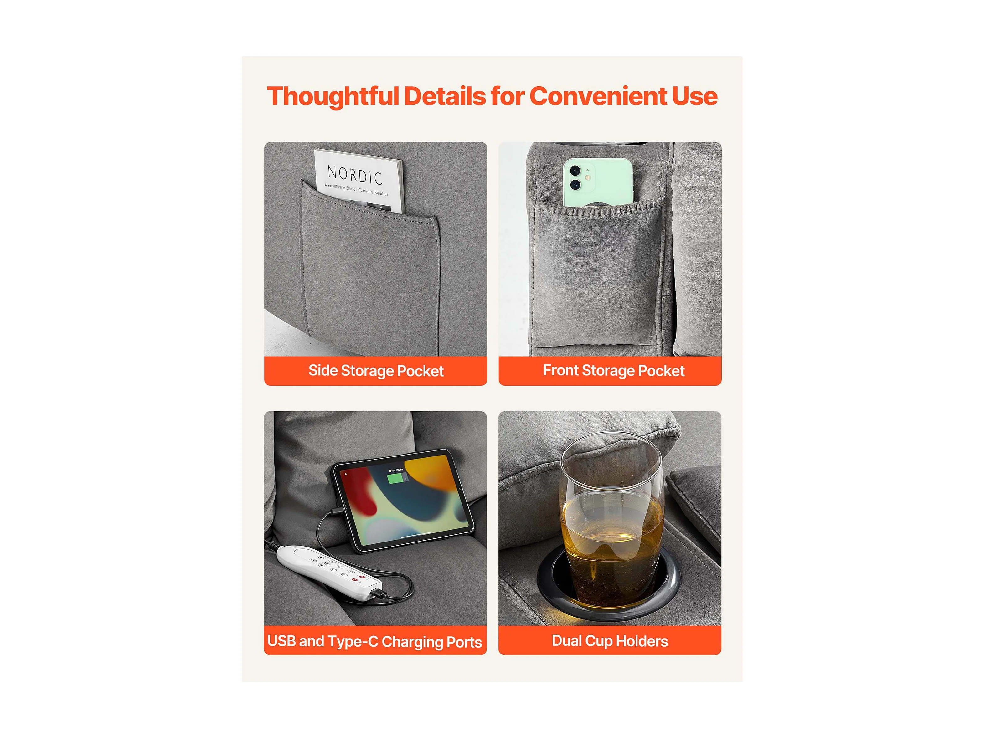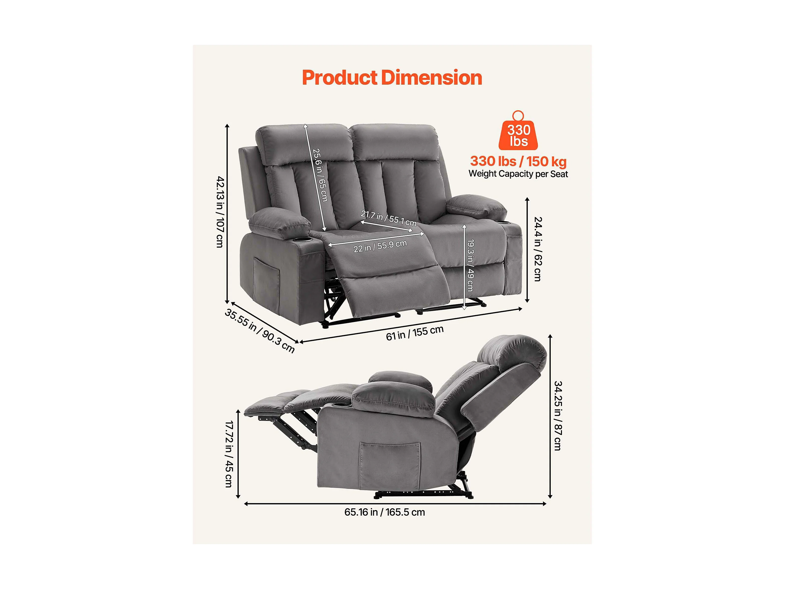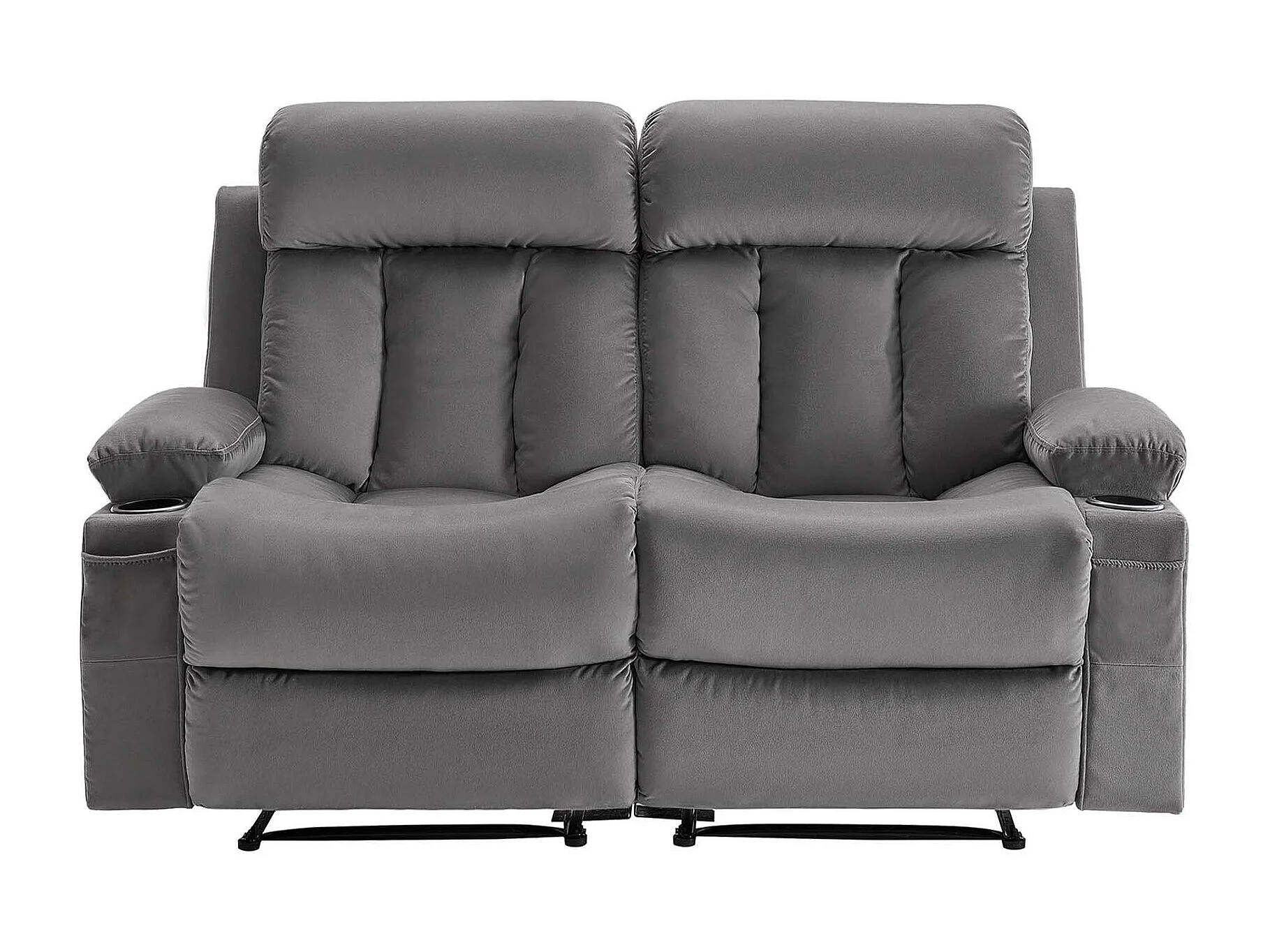 Sofá Reclinable Eléctrico SucceBuy 2 Plazas, Sofá Reclinable con Calefacción y Masaje, en Terciopelo Suave, con Puertos USB, Portavasos y Bolsillos Laterales
