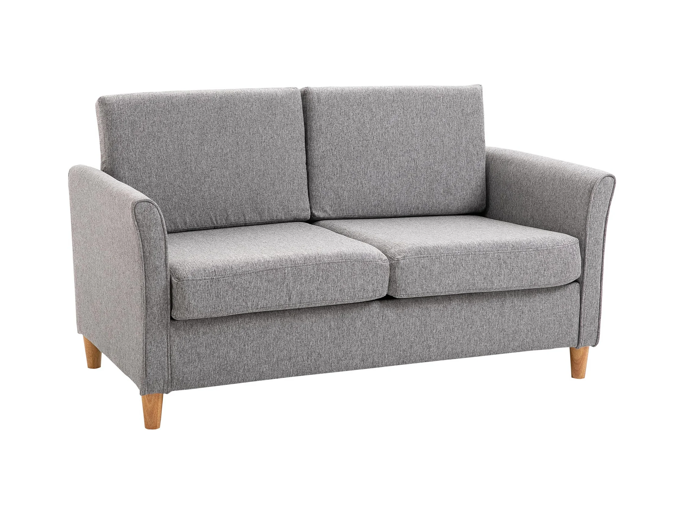 Sofá compacto de 2 plazas, diseño escandinavo, lino y madera de caucho, gris (115 x 66,5 x 73 cm)