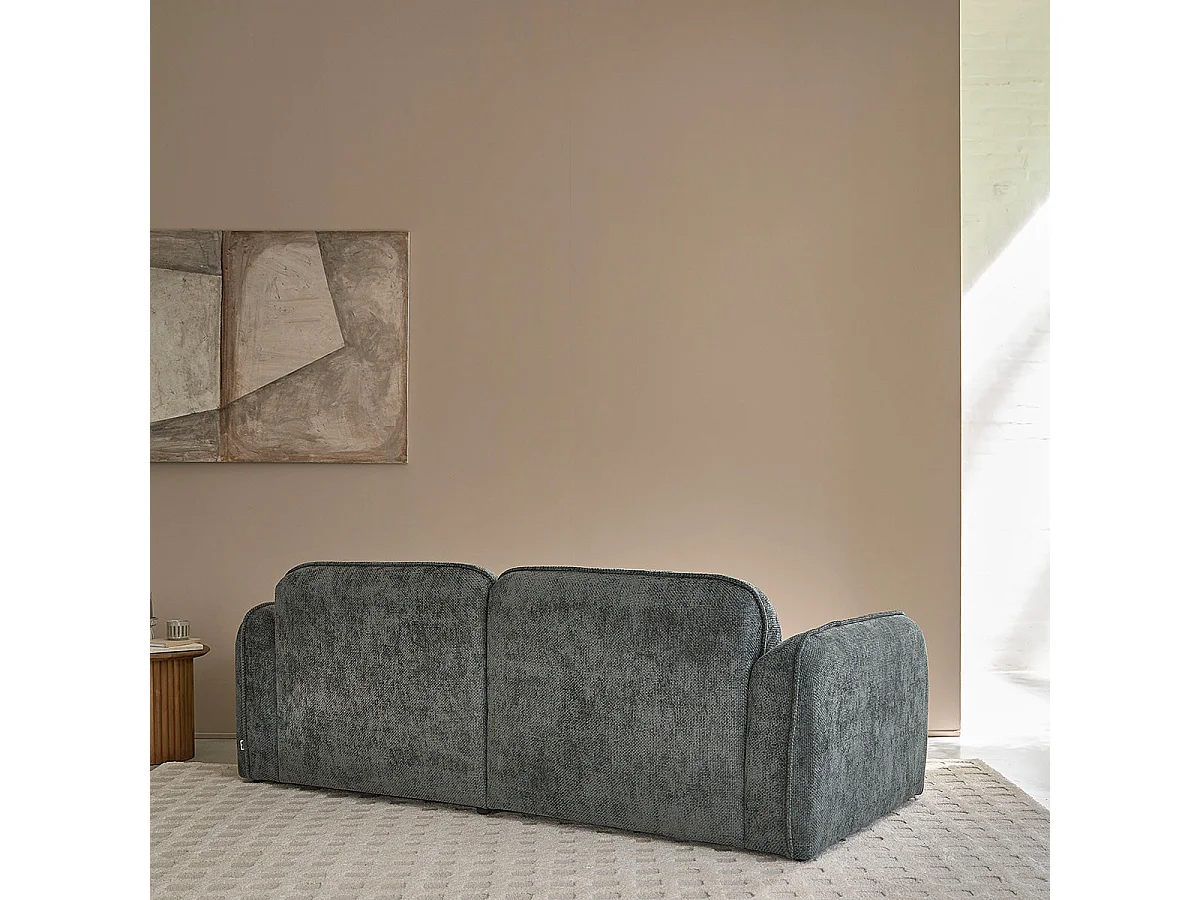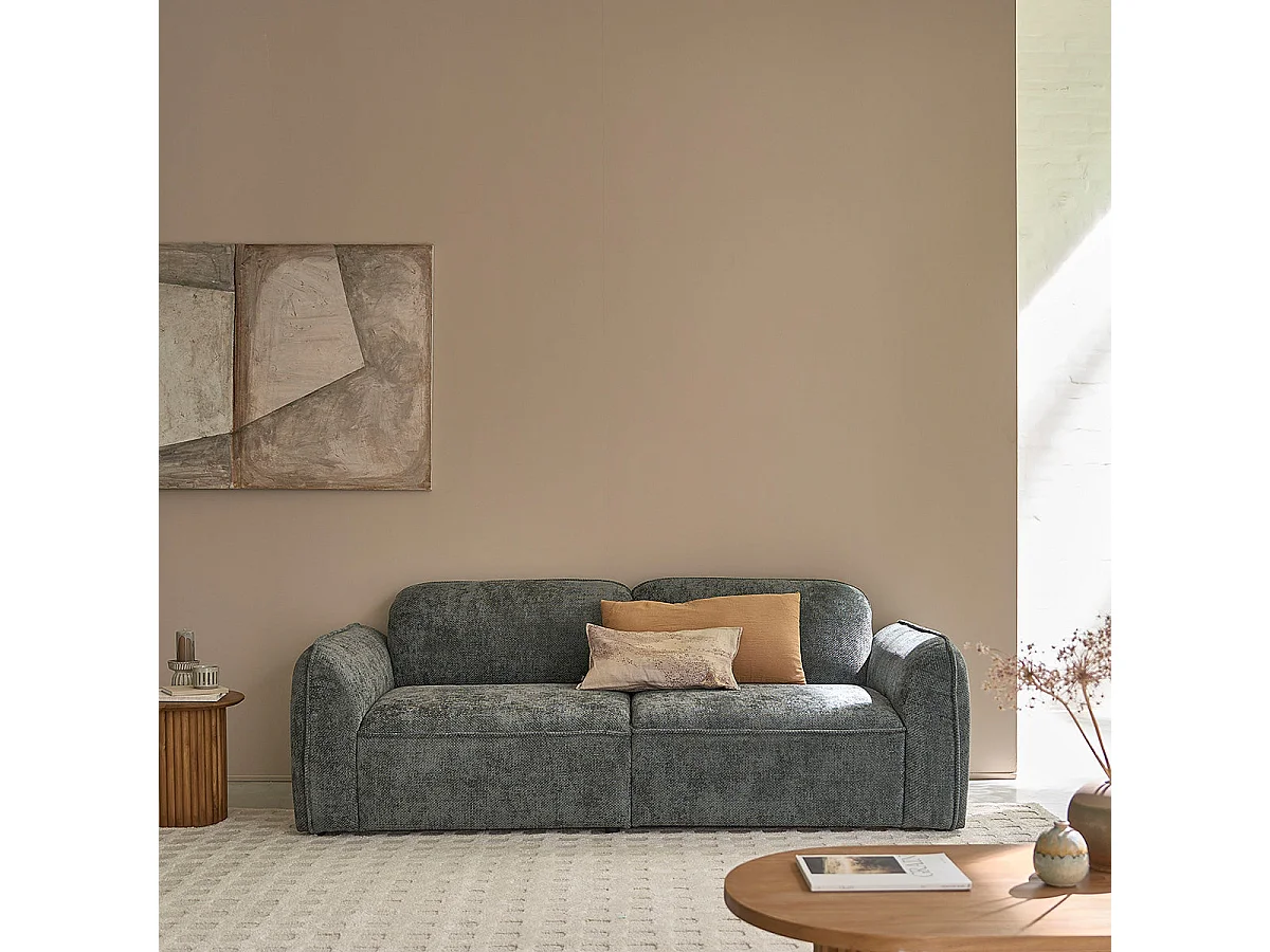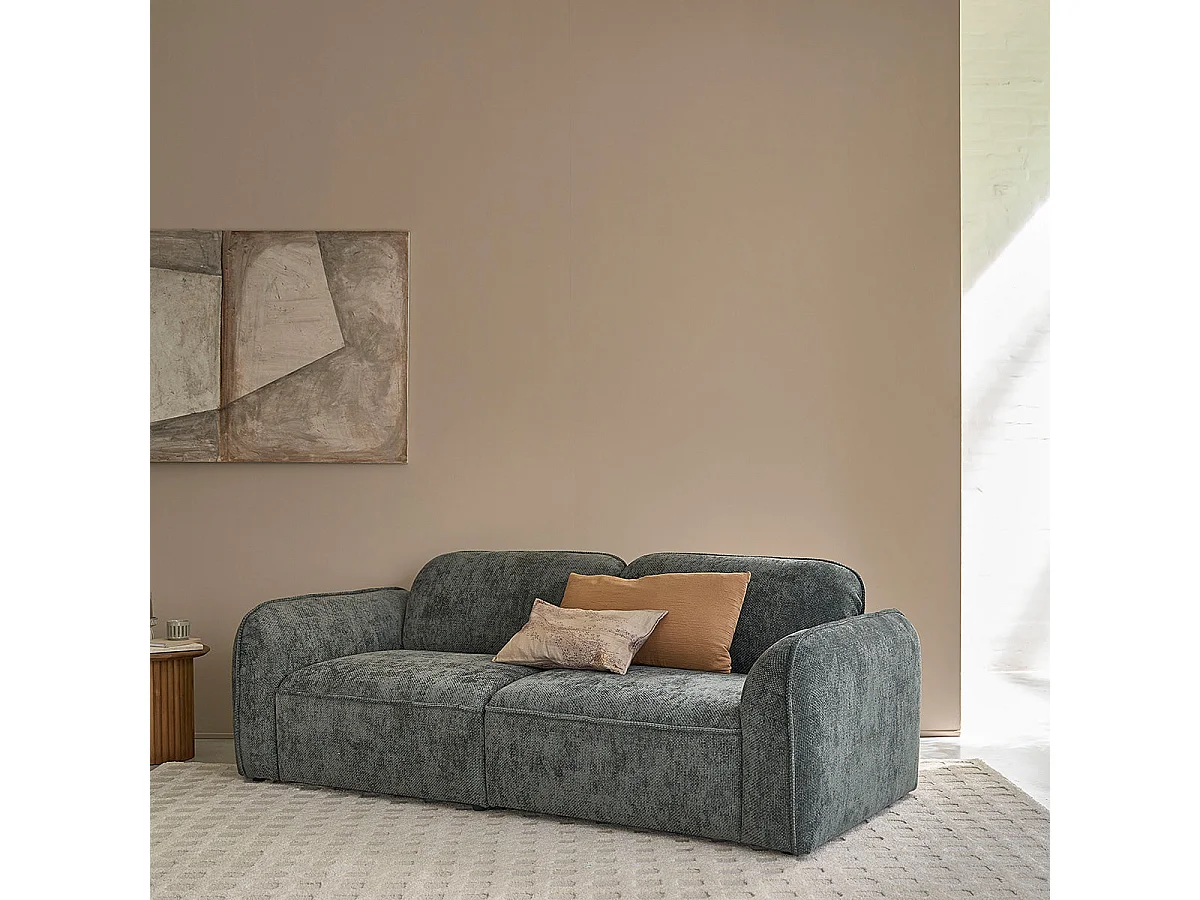 Sofá recto de 3 plazas en terciopelo texturizado verde grisáceo