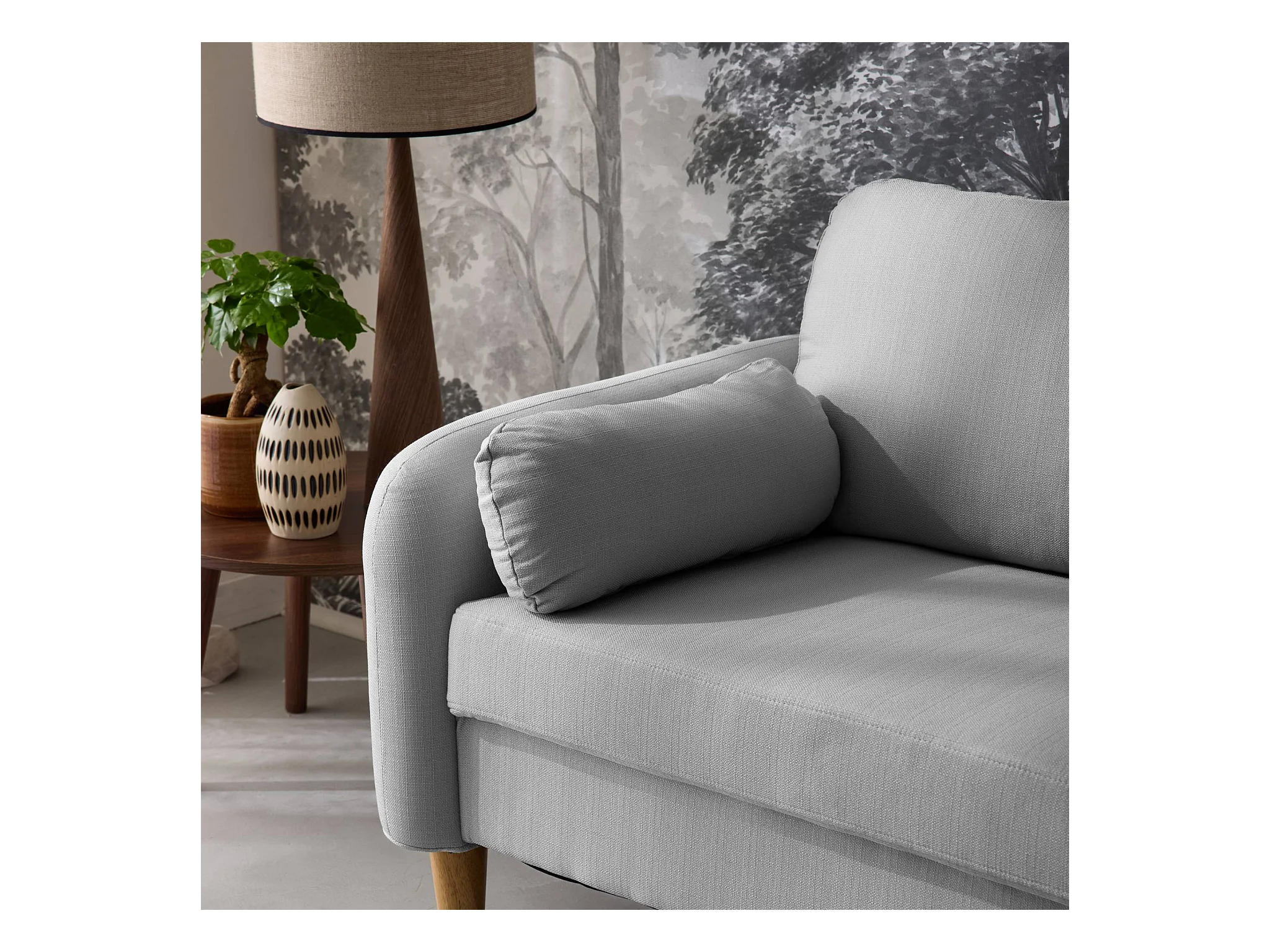 Sofá redondo escandinavo en tela, 2 plazas gris claro