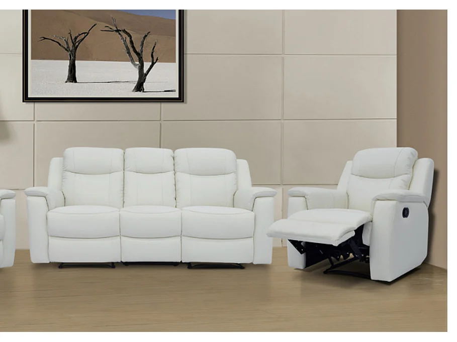 Sofá relax 3+1 plazas EVASION de piel - Blanco marfil