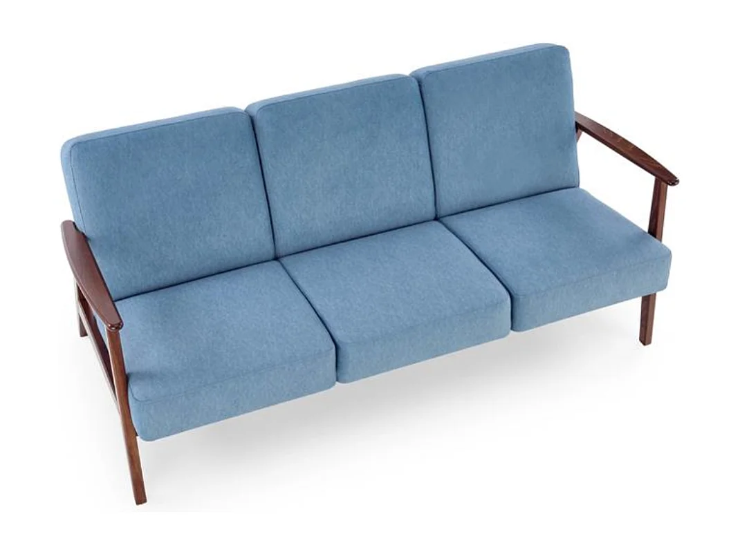 Sofá retro de 3 plazas en tela azul y patas de madera Franky
