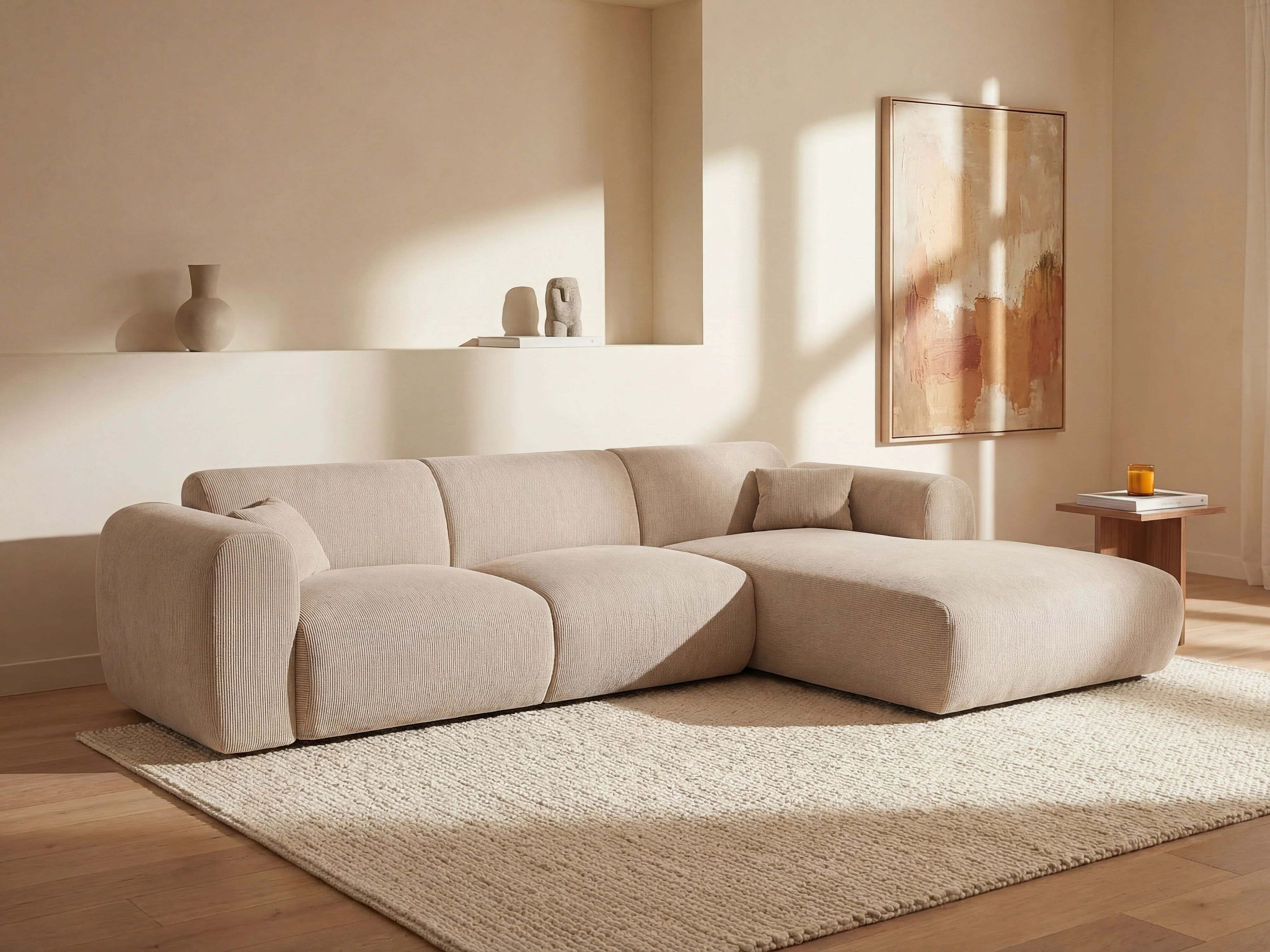 Sofá rinconera derecha de pana beige POGNI de Maison Céphy