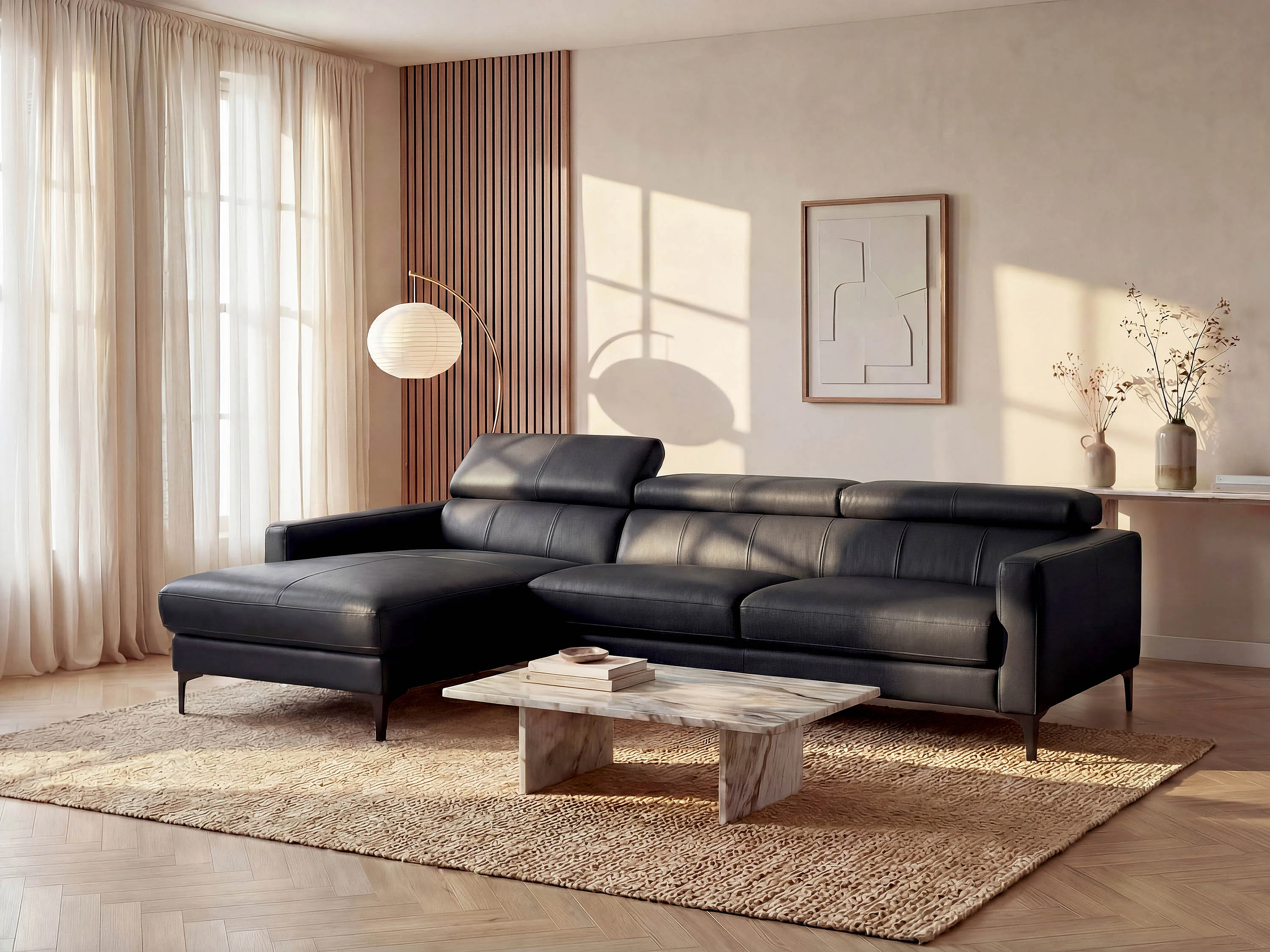 Sofá rinconera de piel de búfalo FLORENCE - Negro - Ángulo izquierdo
