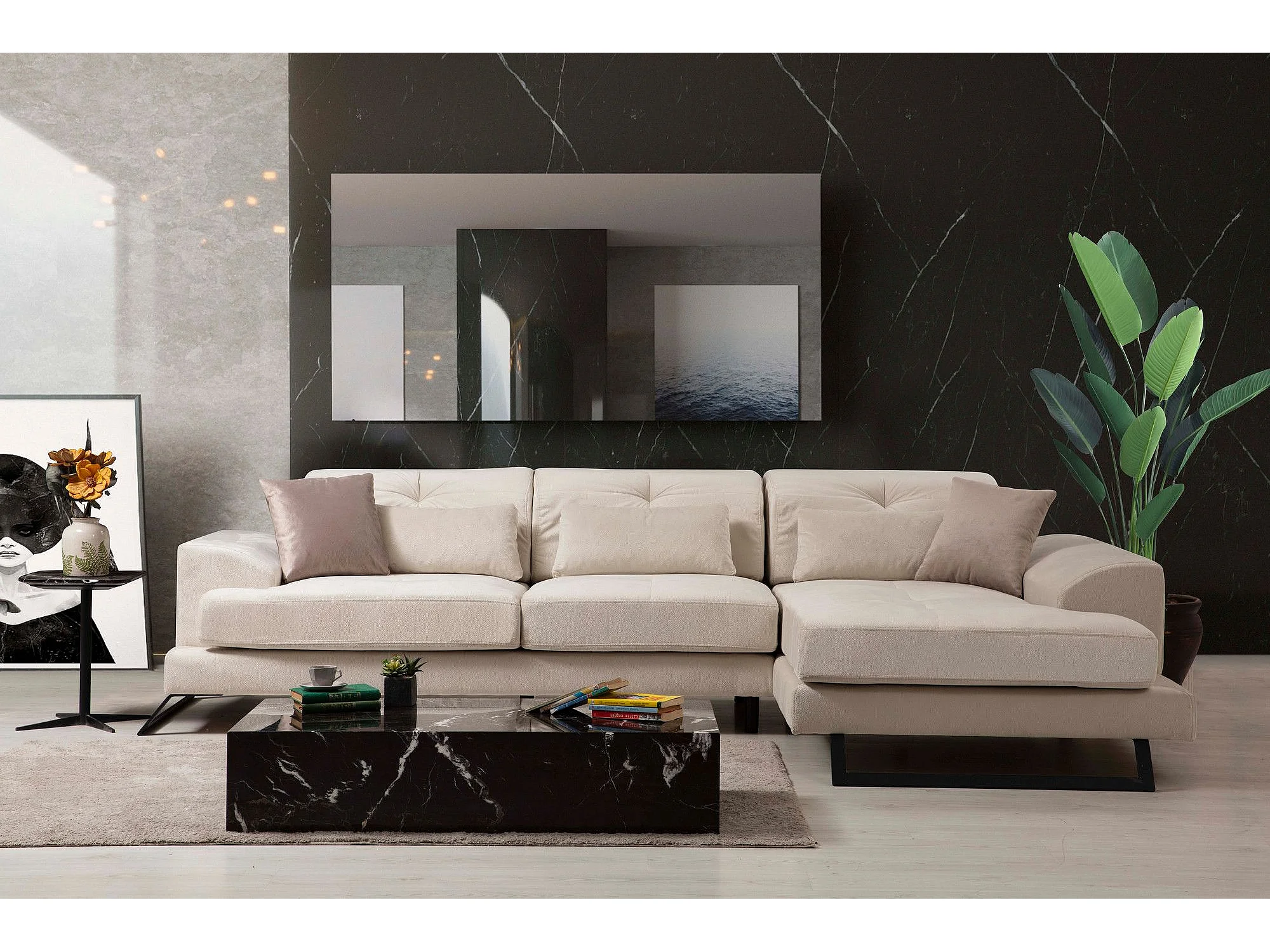 Sofá rinconero Altadena 322, De color marrón claro, 308x190x92cm