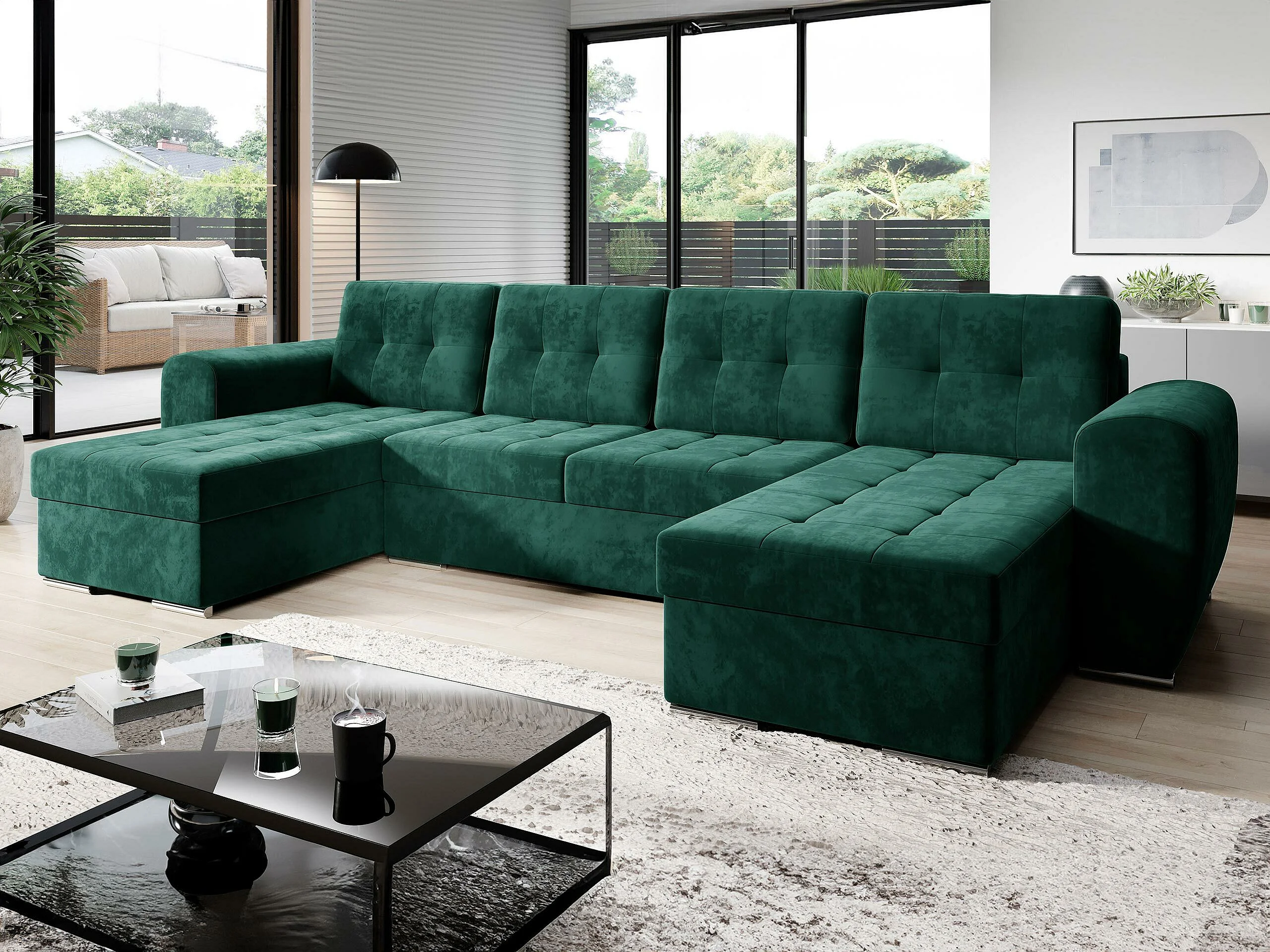 Sofá rinconero Arvada 117, Verde, Función de descanso, Almacenaje, 326x157x86cm