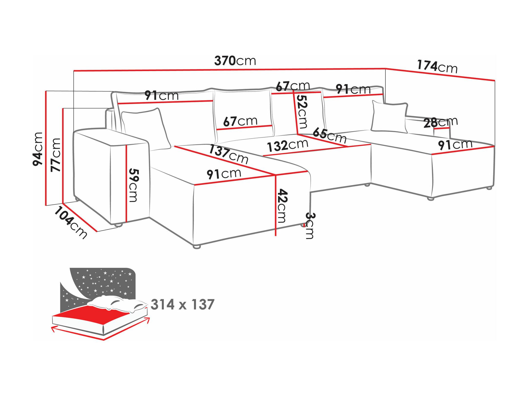 Sofá rinconero Memphis 110, Negro, Función de descanso, Almacenaje, 307x139x95cm