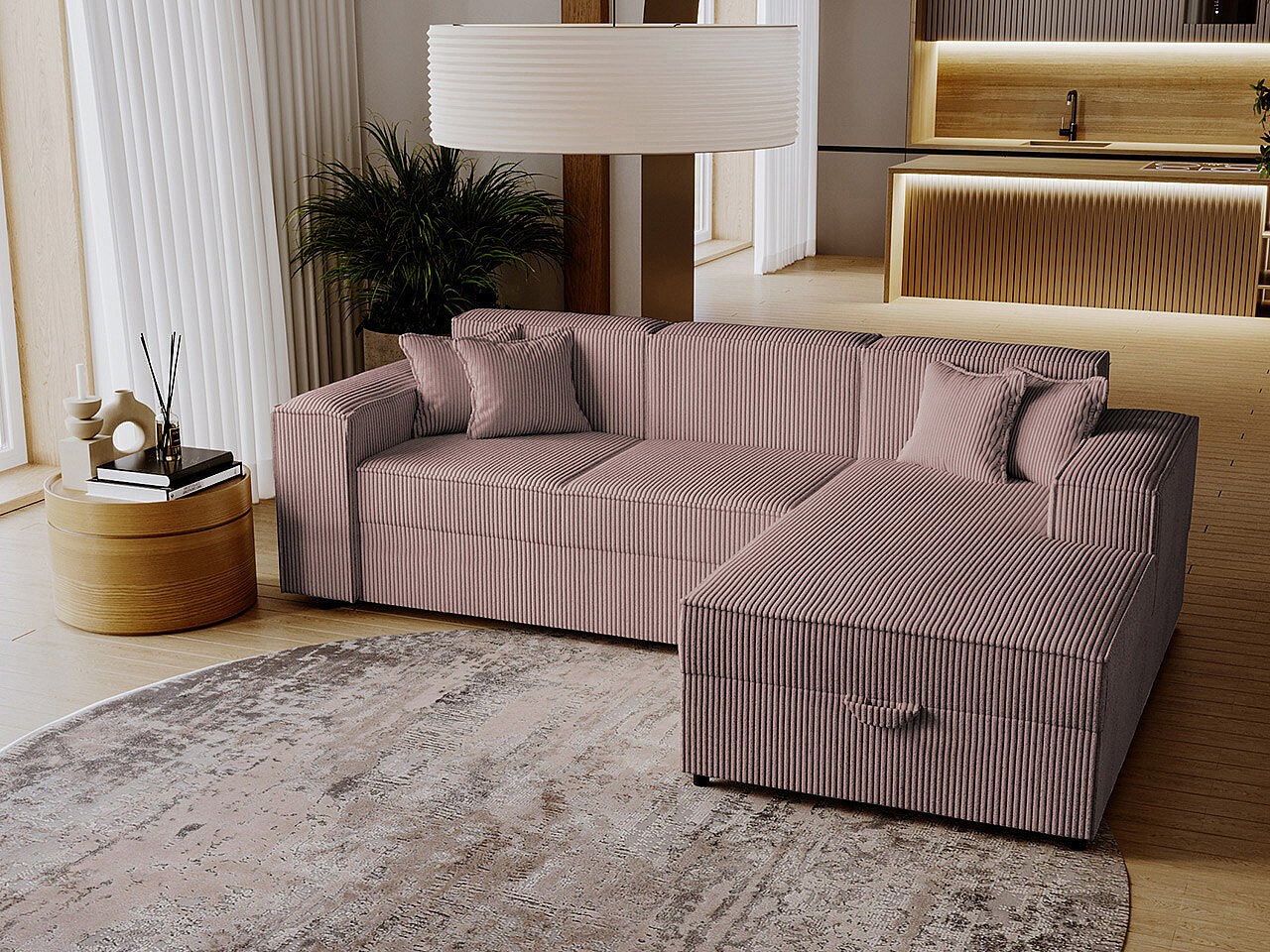 Sofá rinconero Clovis 116, Rosa, Función de descanso, Almacenaje, 253x166x79cm