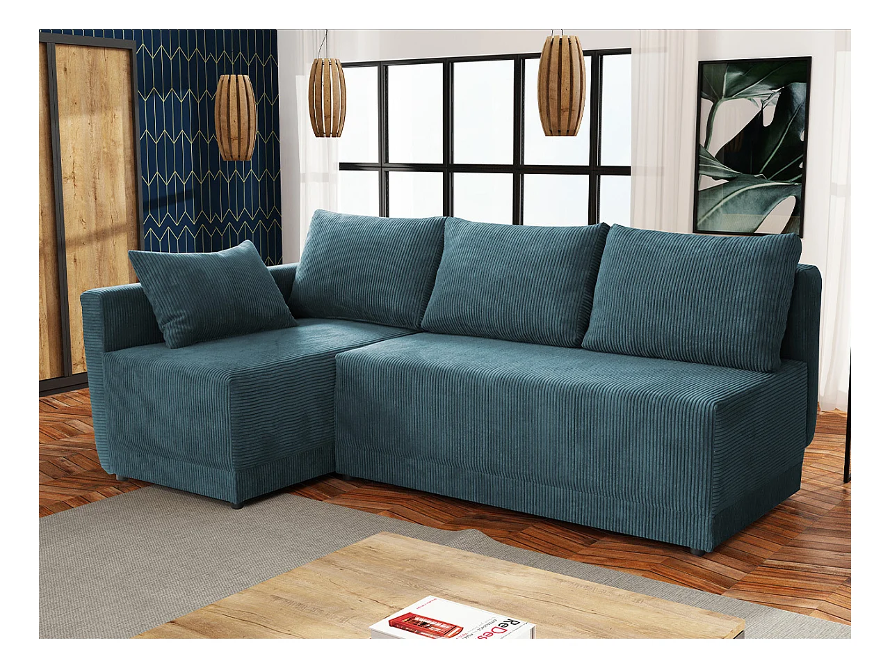 Sofá rinconero Columbus 149, Turquesa, Función de descanso, Almacenaje, 210x135x85cm