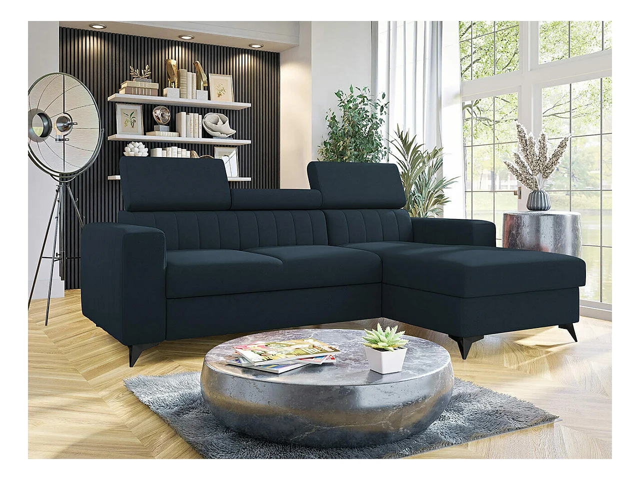 Sofá rinconero Comfivo 190, Azul, Función de descanso, Almacenaje, 345x202x71cm
