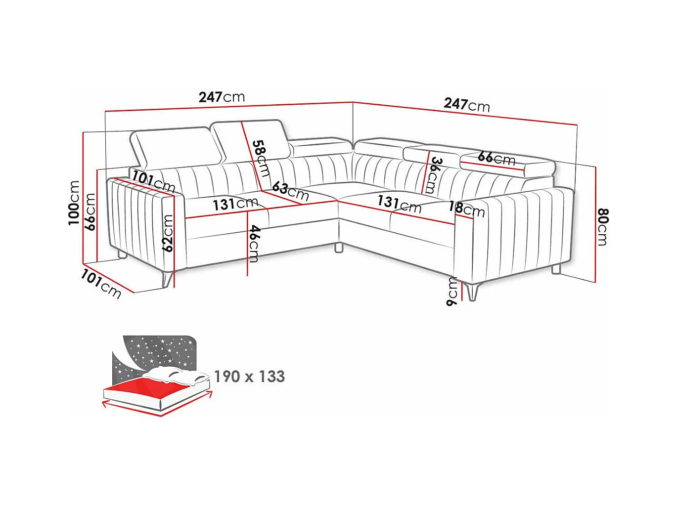 Sofá rinconero Columbus 201, Azul, Función de descanso, Almacenaje, 247x247x80cm