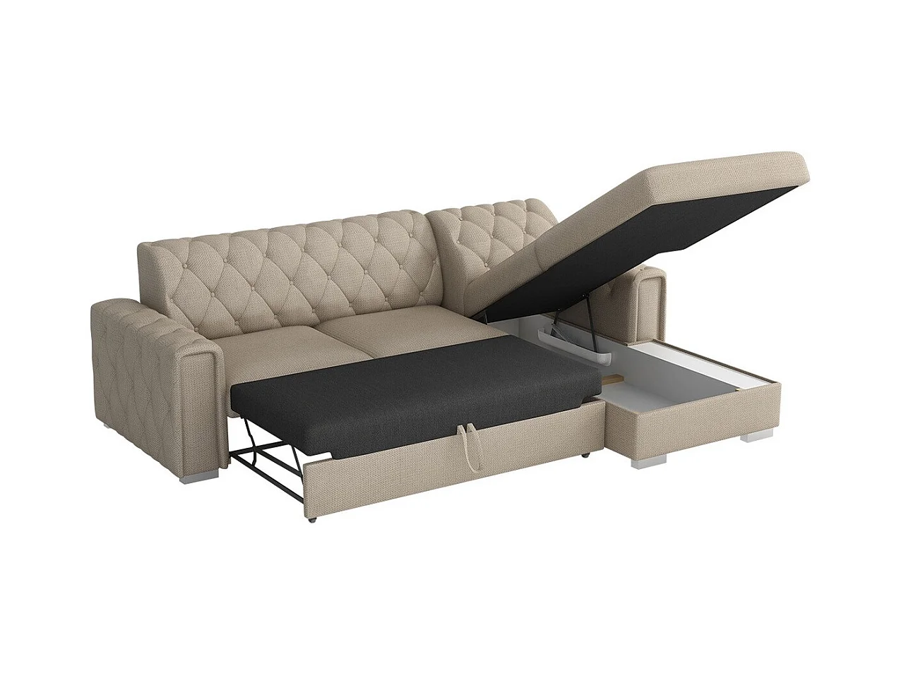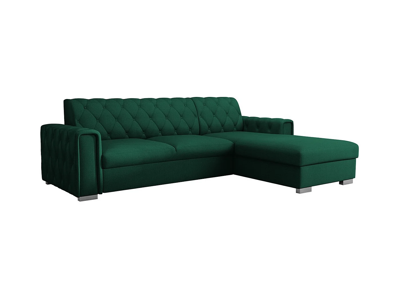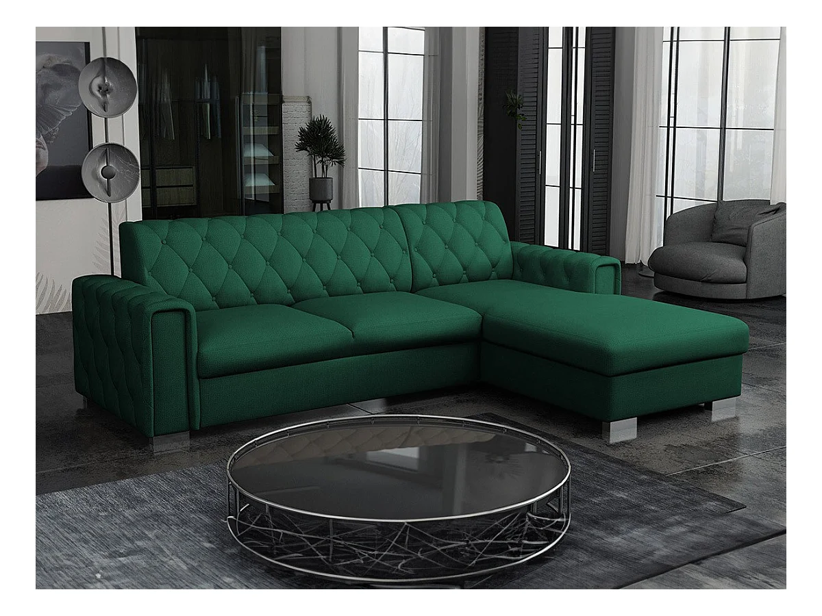 Sofá rinconero Columbus 203, Verde, Función de descanso, Almacenaje, 267x185x85cm