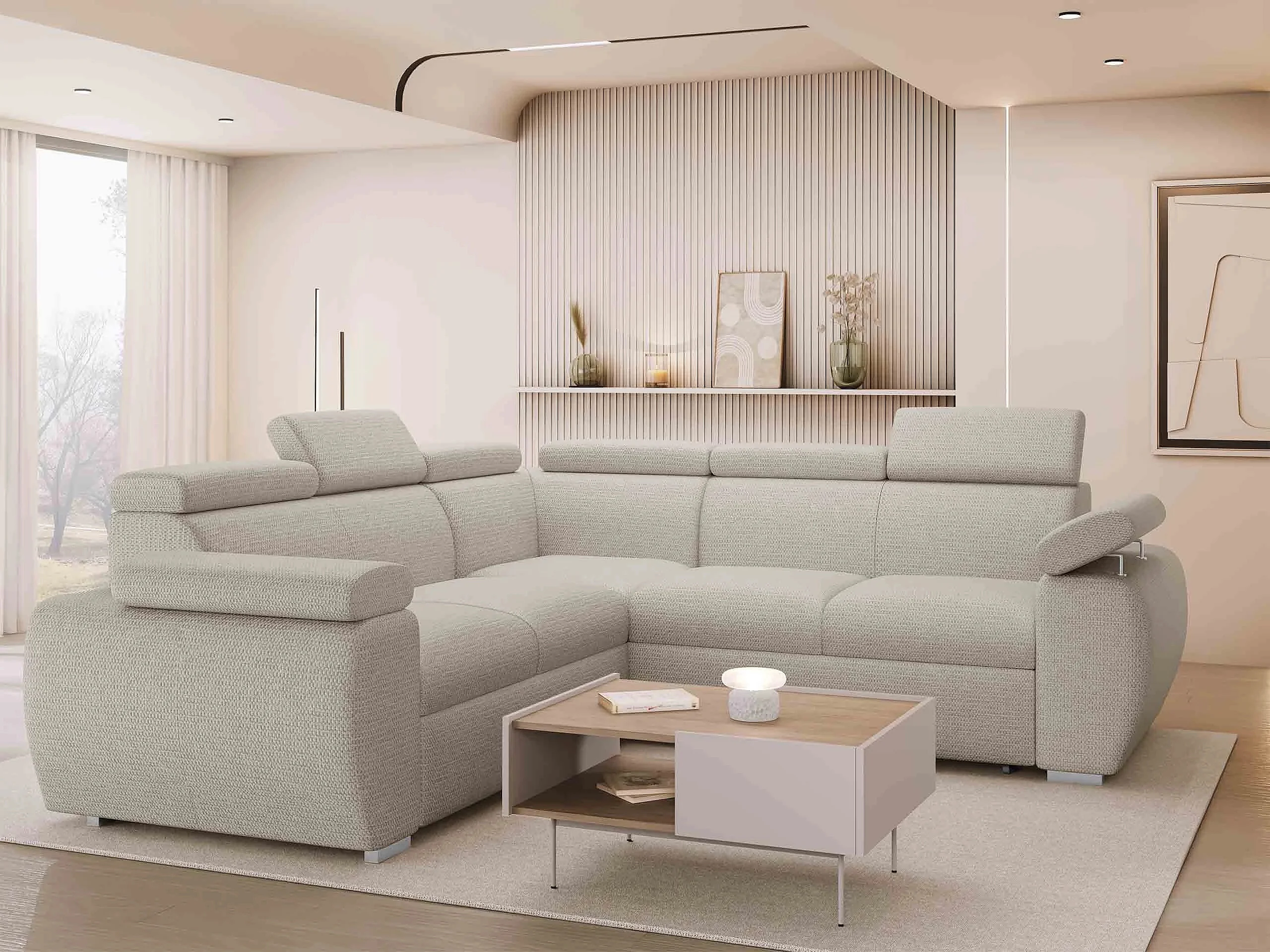 Sofá rinconero Columbus 215, De color marrón claro, Función de descanso, Almacenaje, 85cm