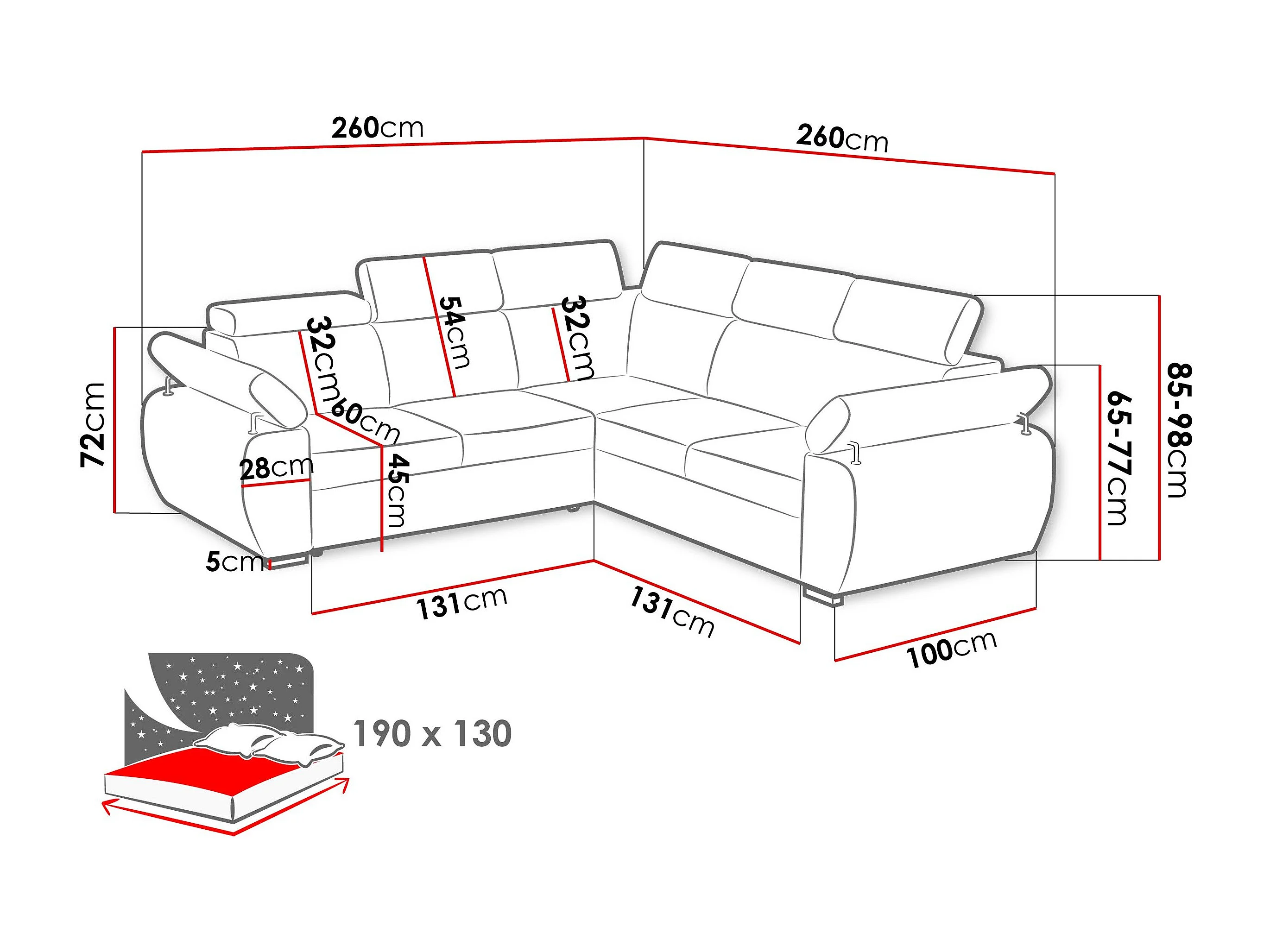 Sofá rinconero Columbus 215, Marrón, Función de descanso, Almacenaje, 260x260x85cm