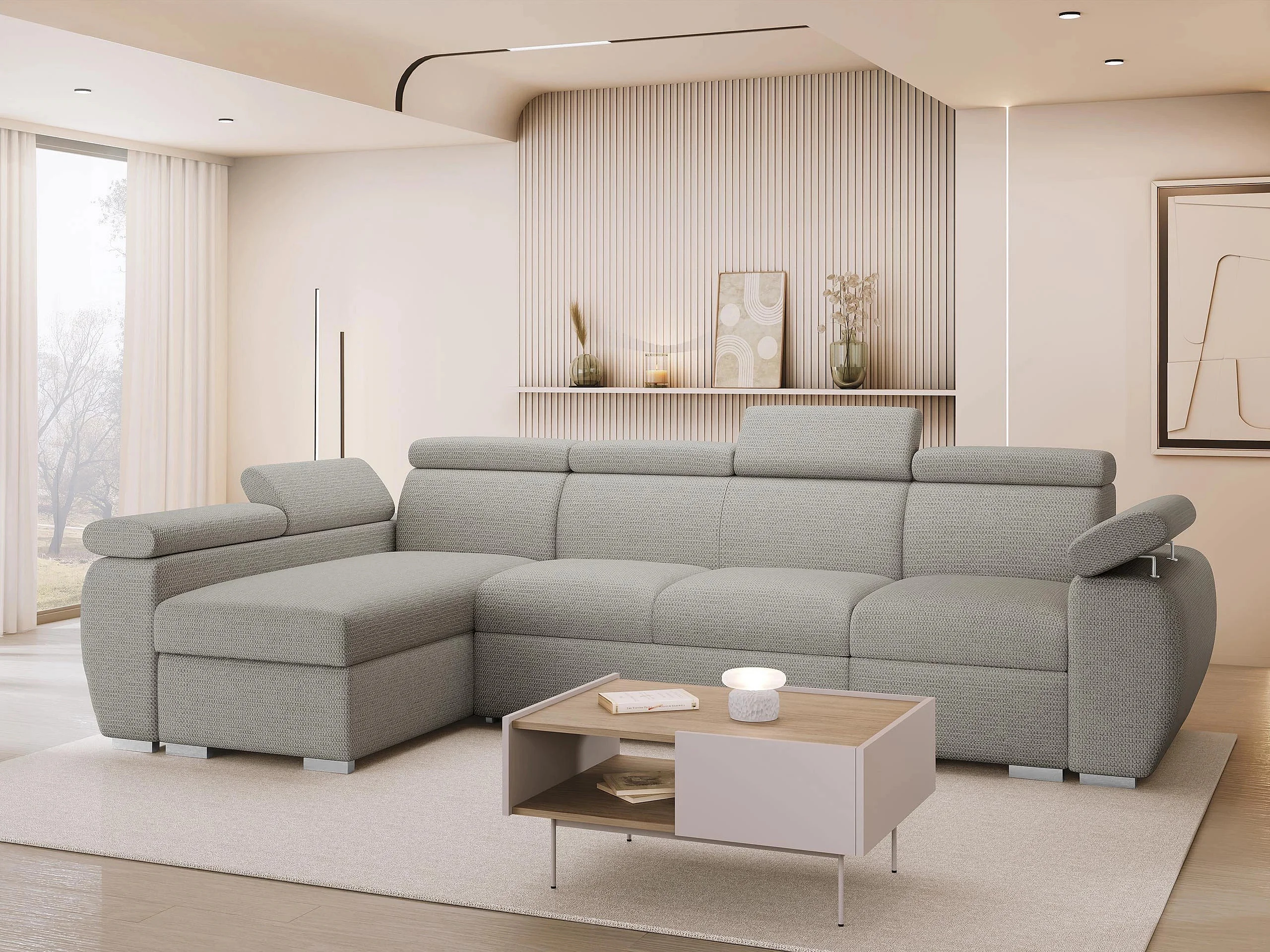 Sofá rinconero Columbus 227, De color marrón claro, Función de descanso, Almacenaje, 85cm