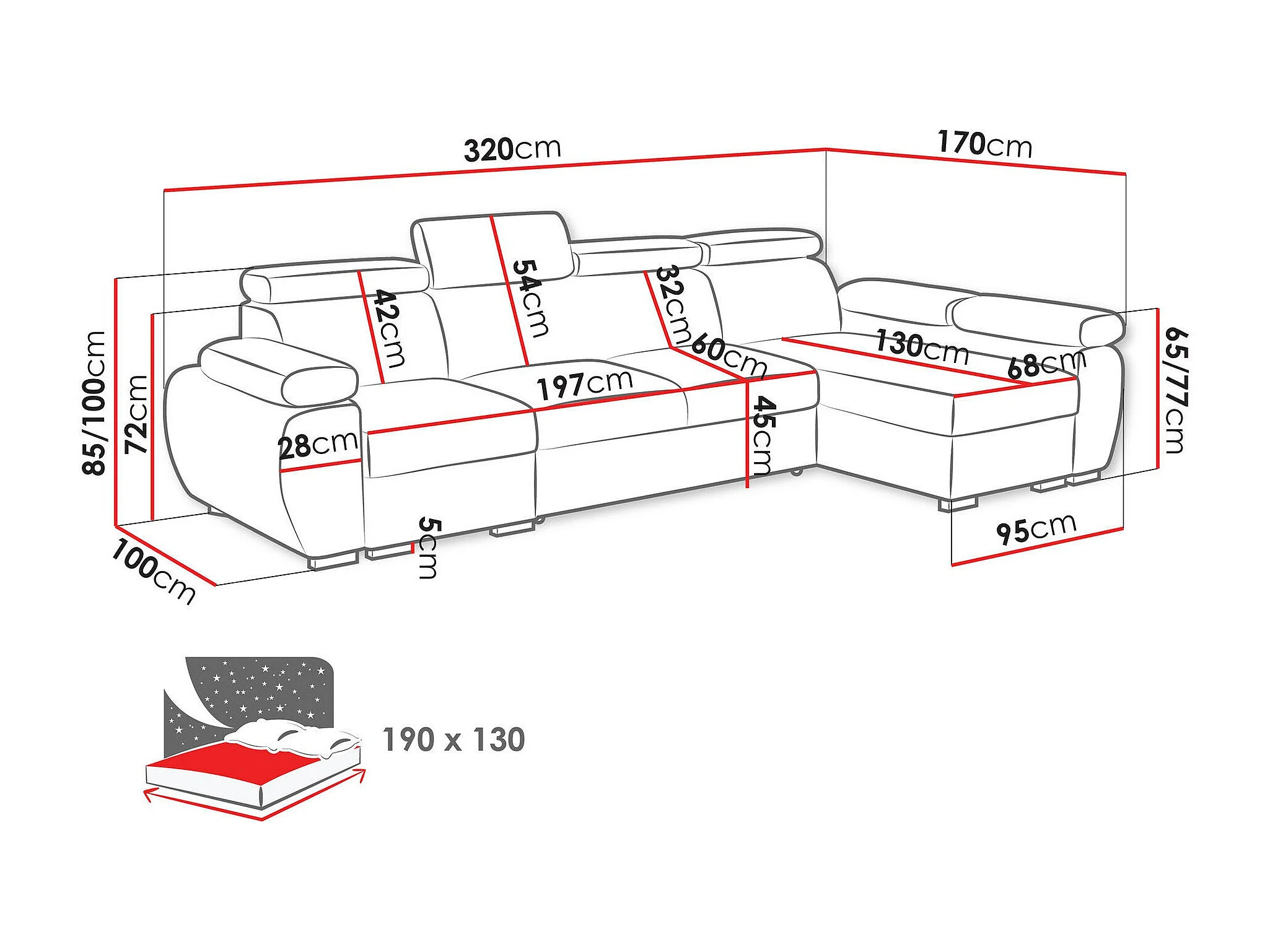 Sofá rinconero Columbus 227, Gris, Función de descanso, Almacenaje, 320x170x85cm