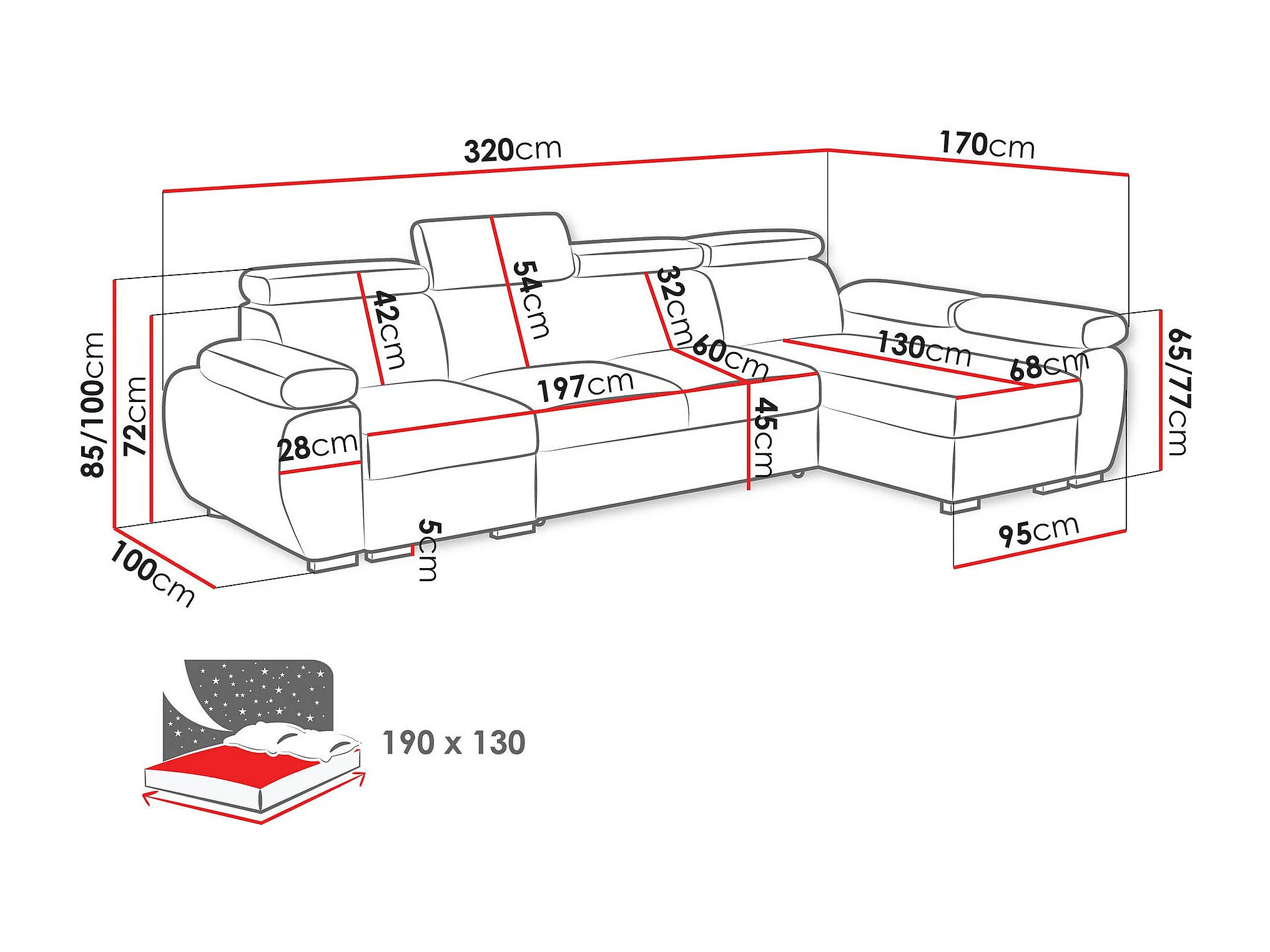 Sofá rinconero Columbus 227, Gris, Función de descanso, Almacenaje, 320x170x85cm