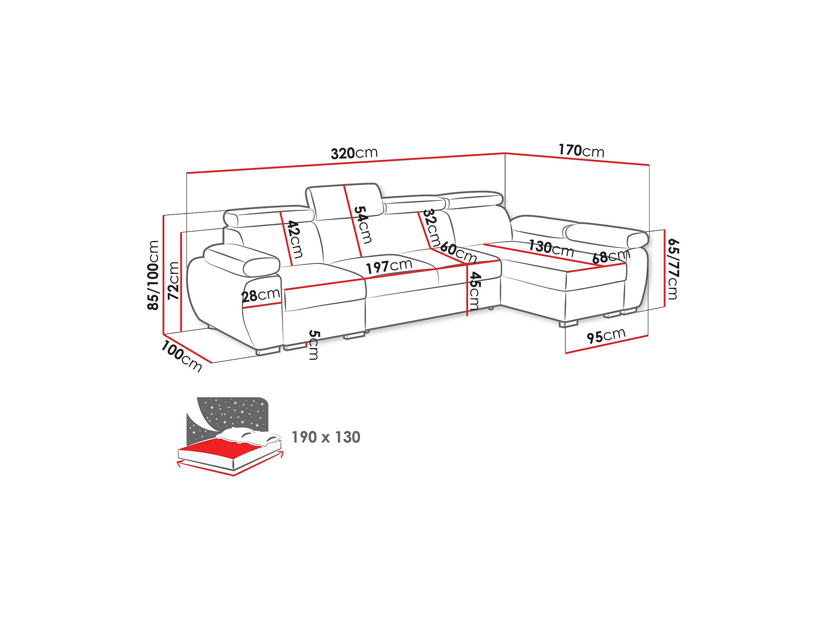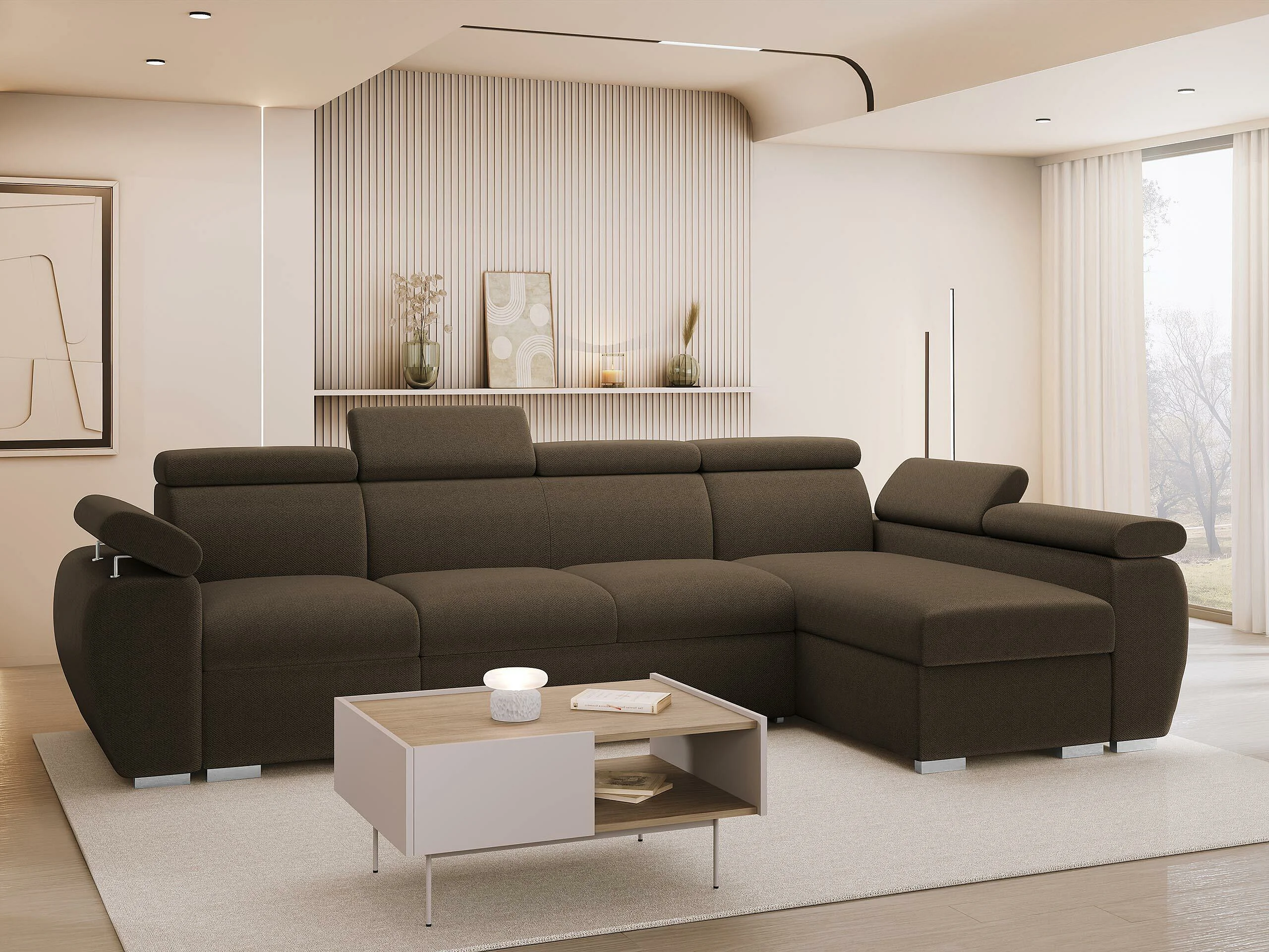 Sofá rinconero Columbus 227, Marrón, Función de descanso, Almacenaje, 320x170x85cm