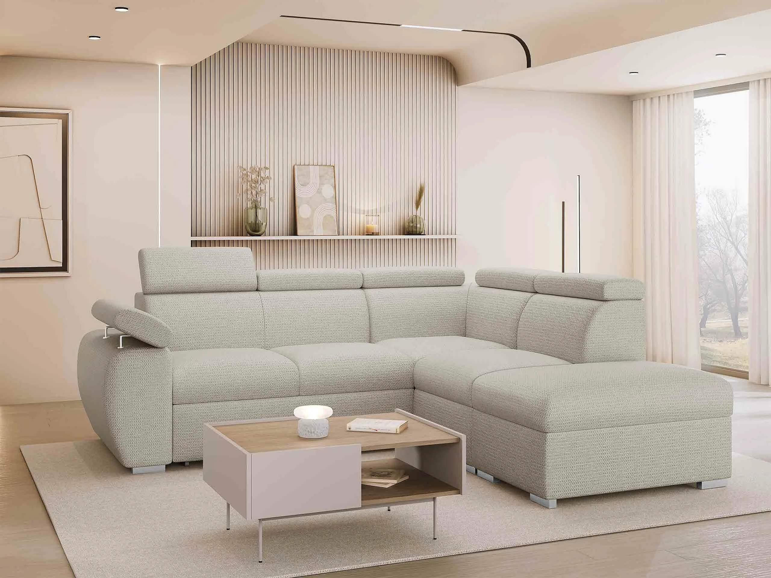 Sofá rinconero Columbus 228, De color marrón claro, Función de descanso, Almacenaje, 85cm