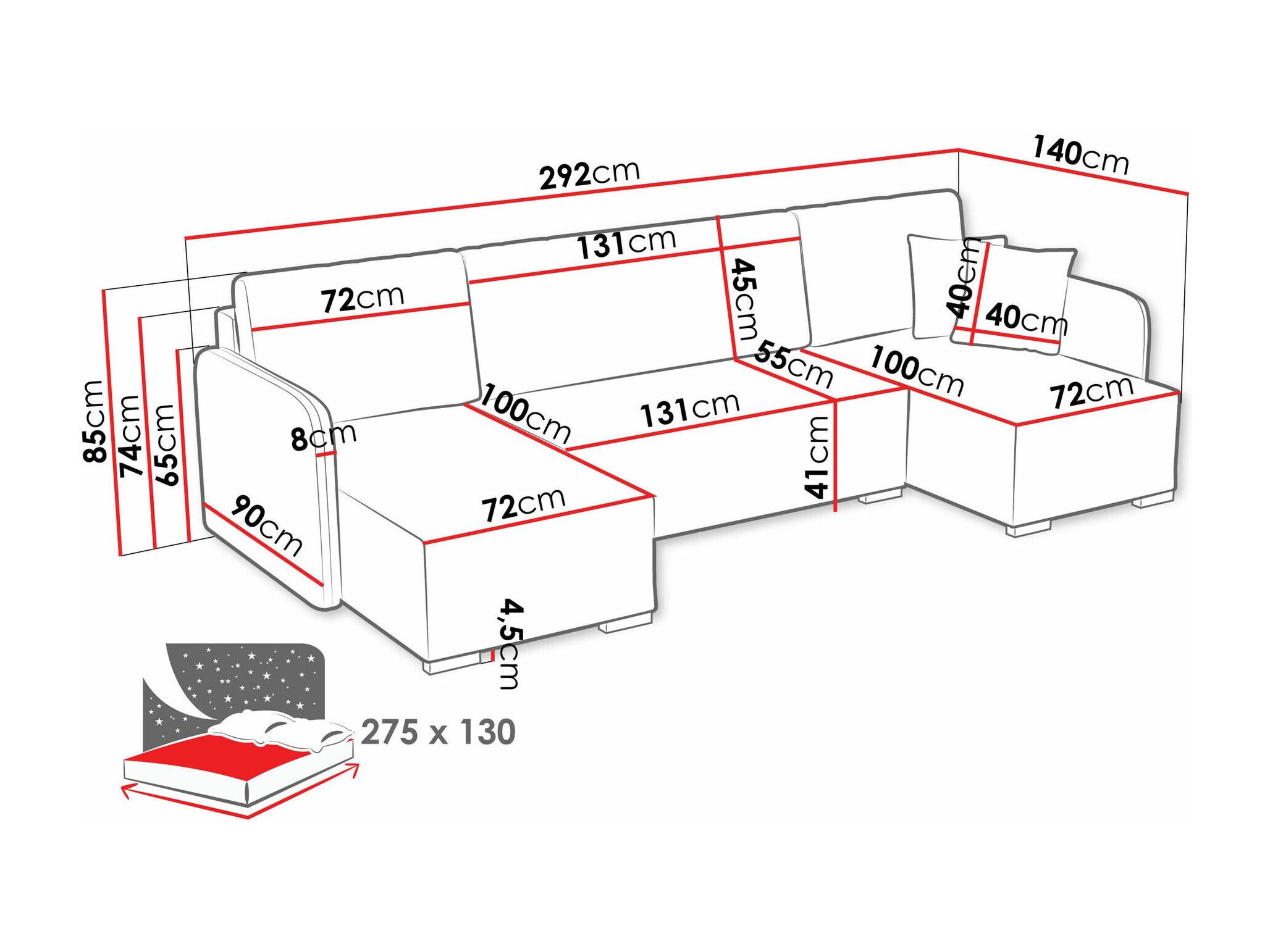 Sofá rinconero Temple 131, Gris, Función de descanso, Almacenaje, 234x140x81cm