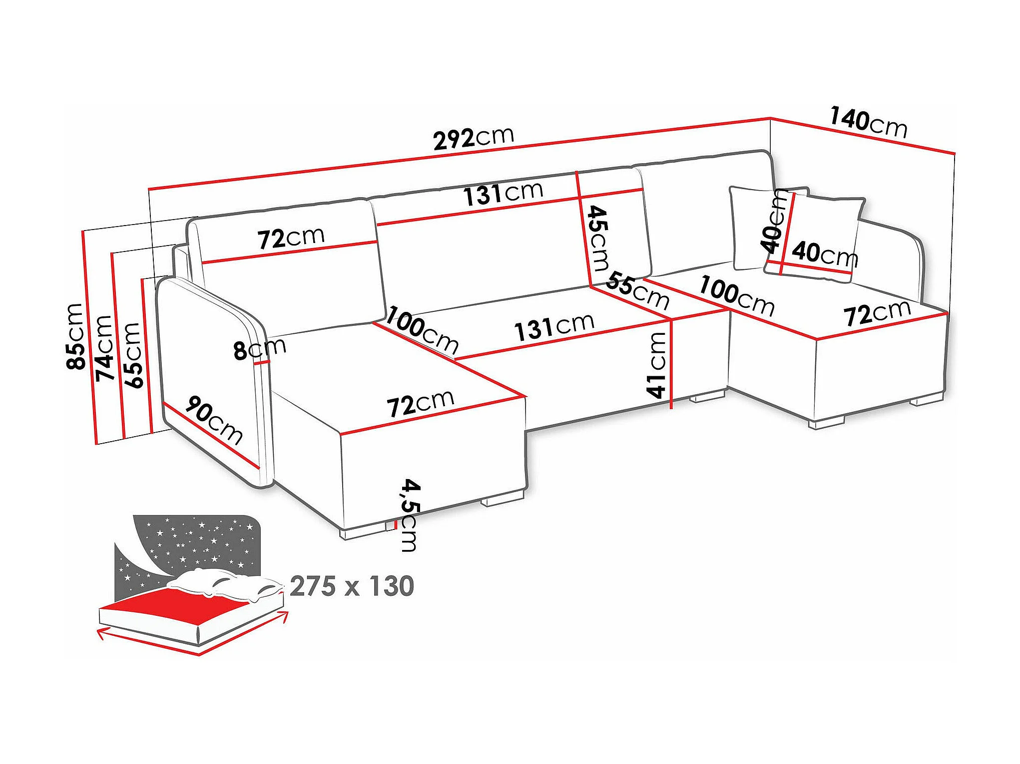 Sofá rinconero Columbus 246, Negro, Función de descanso, Almacenaje, 292x140x85cm