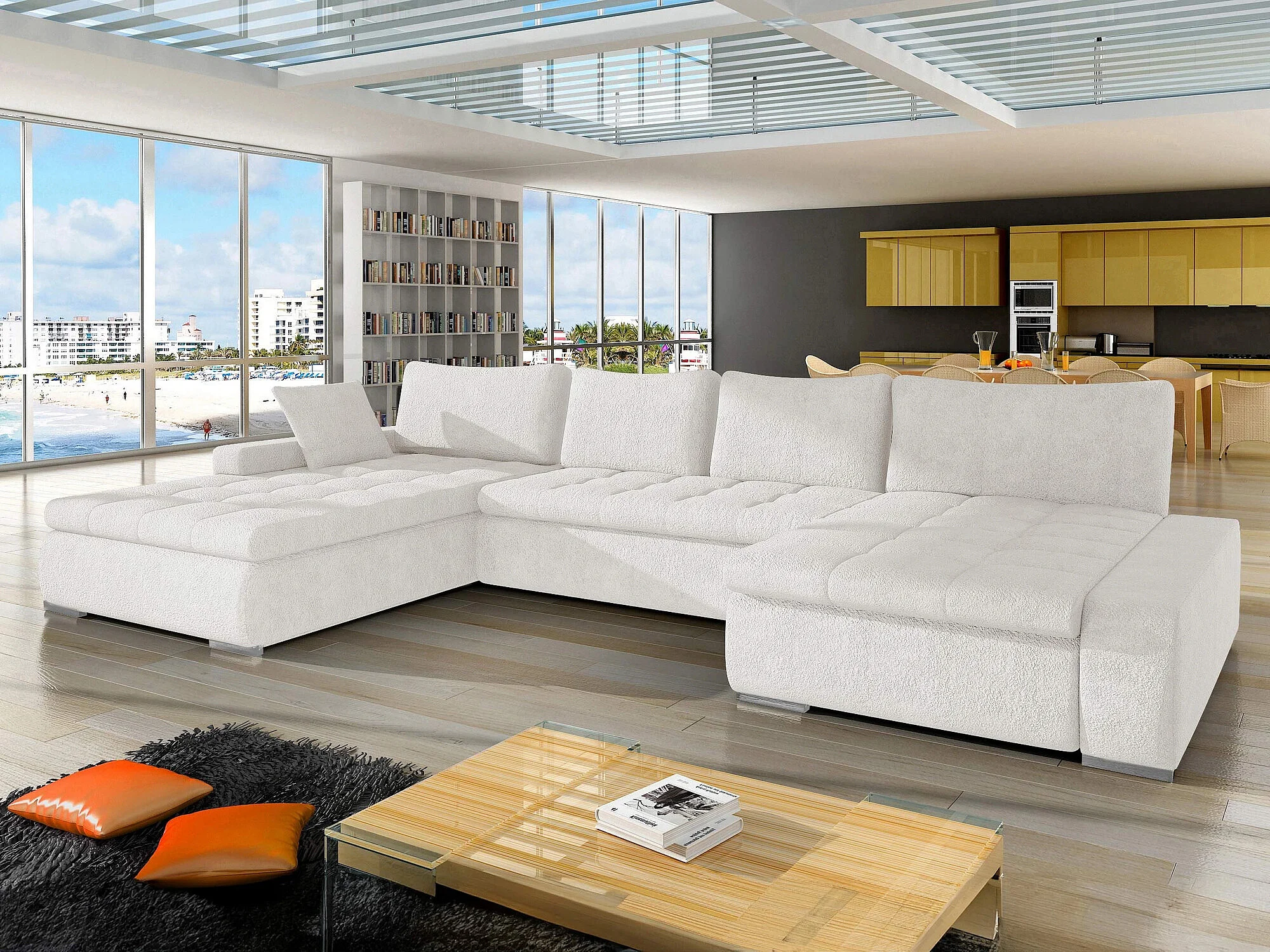 Sofá rinconero Comfivo 106, De color marrón claro, Función de descanso, Almacenaje, 394cm
