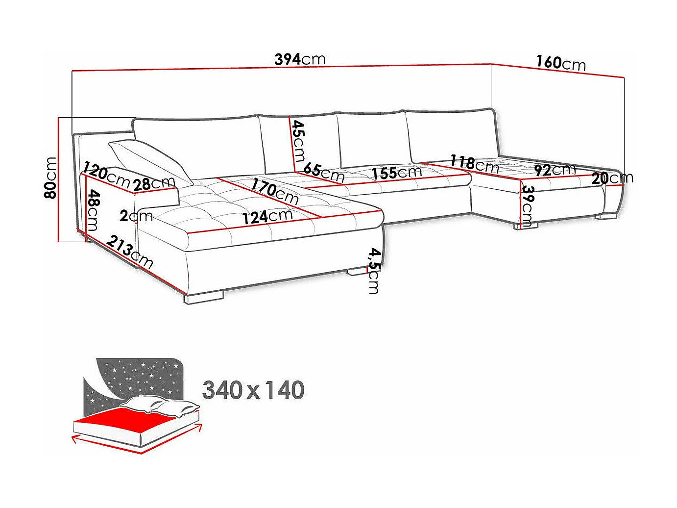 Sofá rinconero Comfivo 106, Gris, Función de descanso, Almacenaje, 394x213x80cm