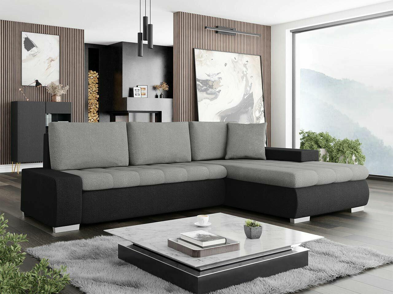 Sofá rinconero Comfivo 112, Gris, Función de descanso, Almacenaje, 265x185x85cm