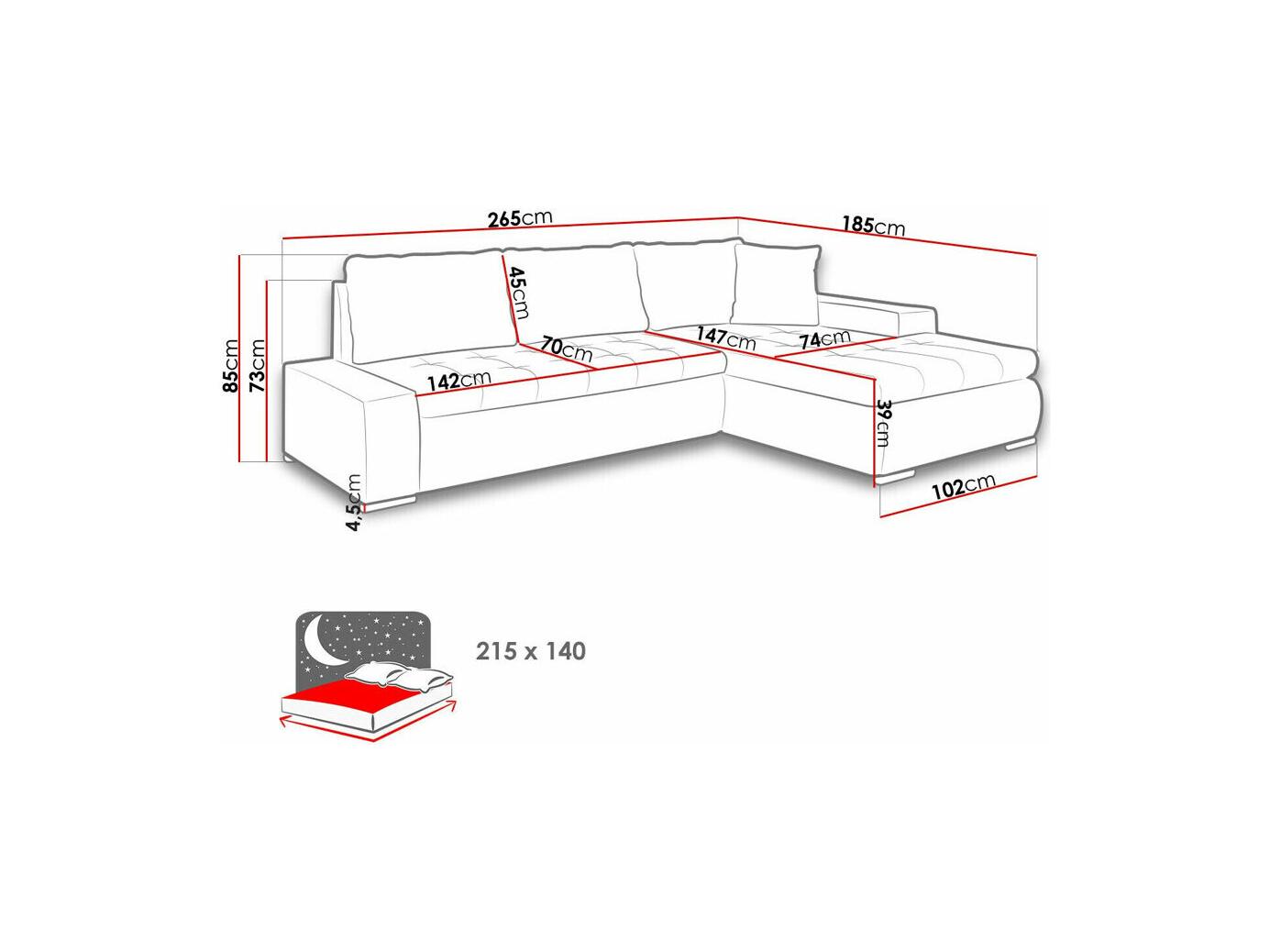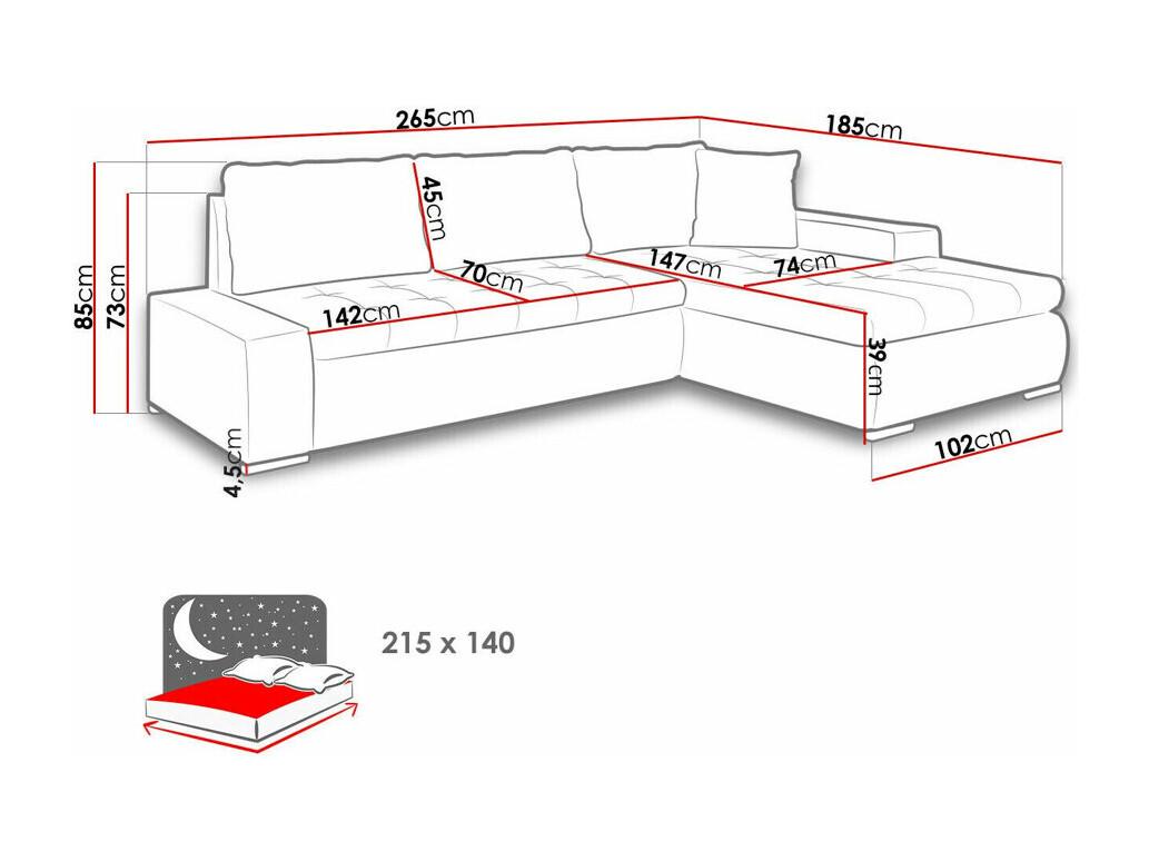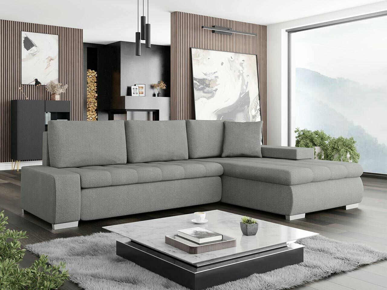 Sofá rinconero Comfivo 112, Gris, Función de descanso, Almacenaje, 265x185x85cm