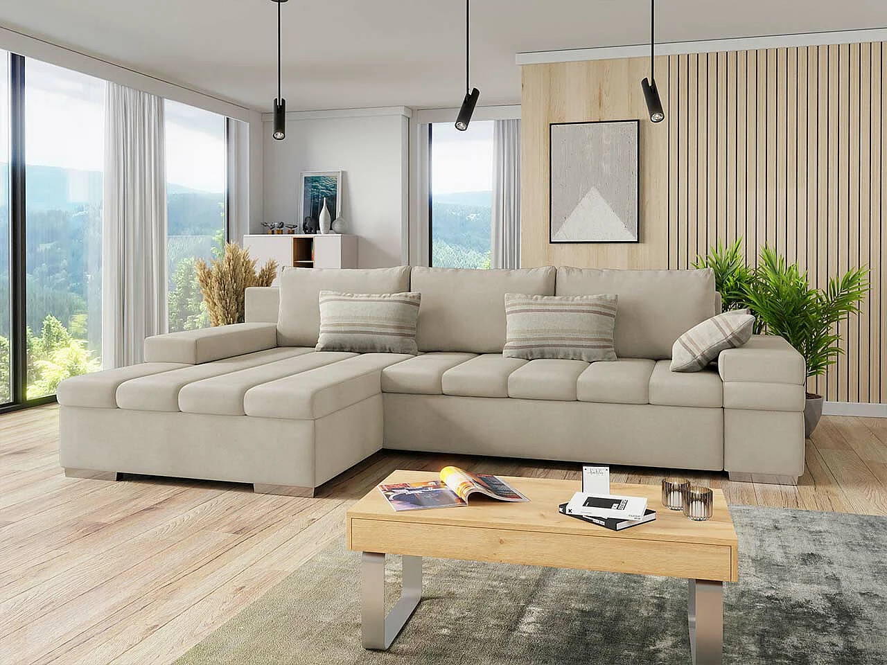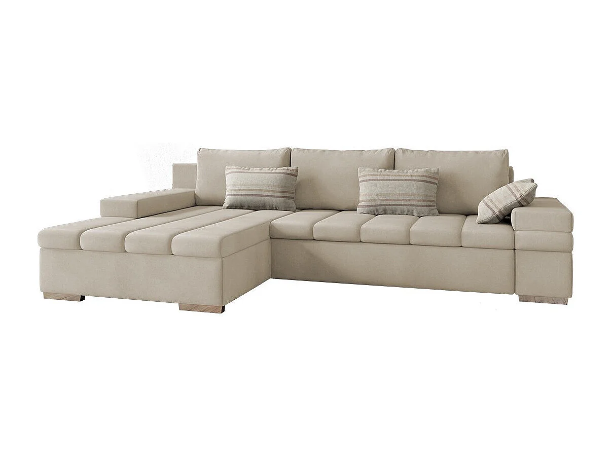 Sofá rinconero Comfivo 113, De color marrón claro, Función de descanso, Almacenaje, 310cm