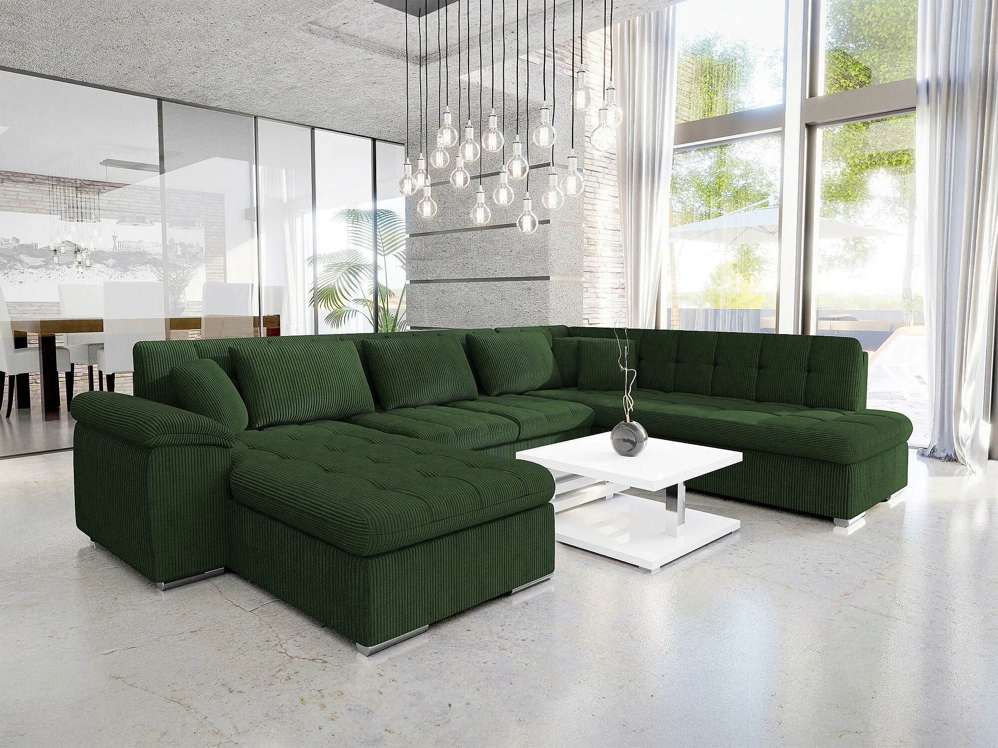 Sofá rinconero Comfivo 114, Verde, Función de descanso, Almacenaje, 348x205x76cm