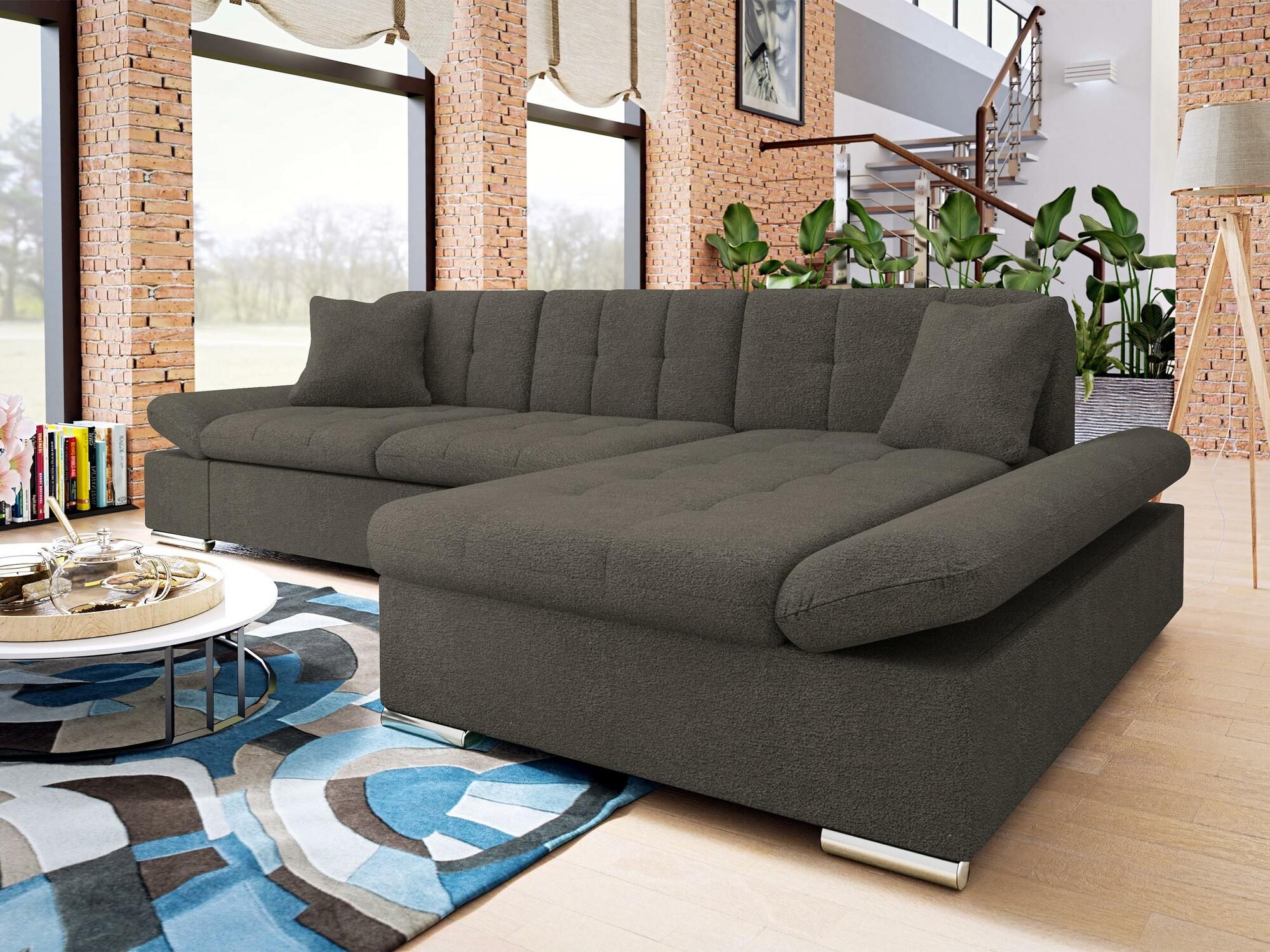 Sofá rinconero Comfivo 150, Gris, Función de descanso, Almacenaje, 345x205x76cm