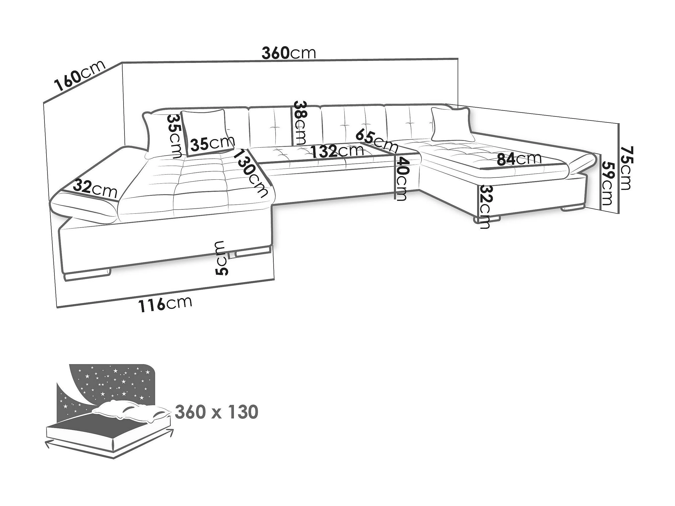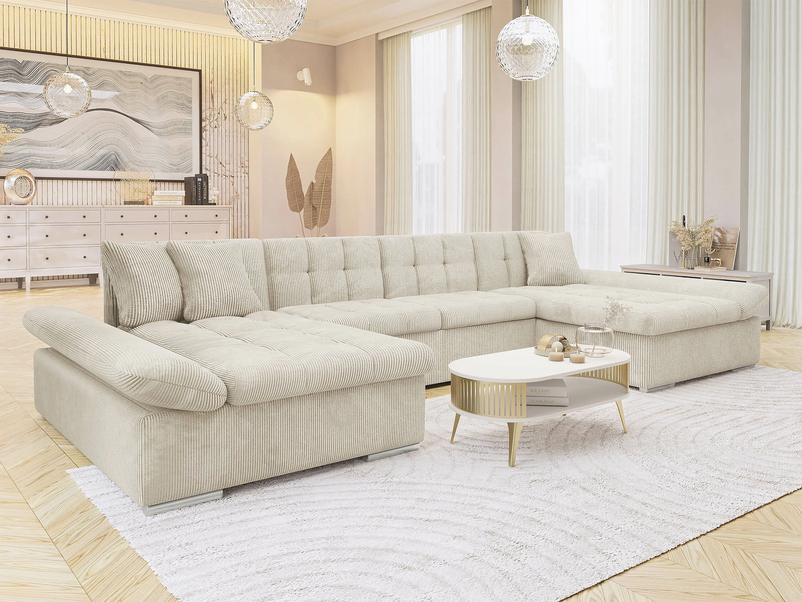 Sofá rinconero Comfivo Ficus, Crema, Función de descanso, Almacenaje, 360x160x75cm