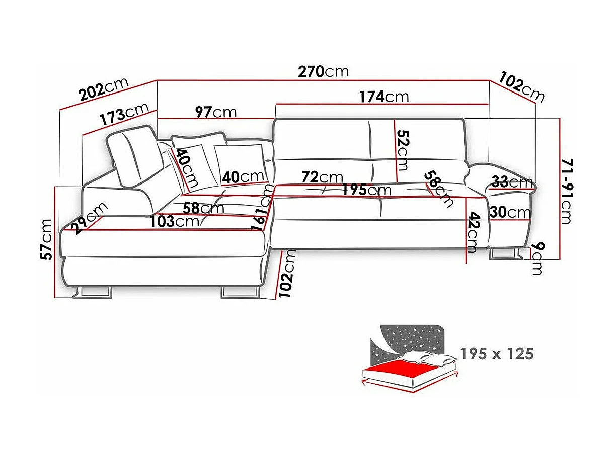 Sofá rinconero Comfivo 167, Gris, Función de descanso, Almacenaje, 270x202x71cm