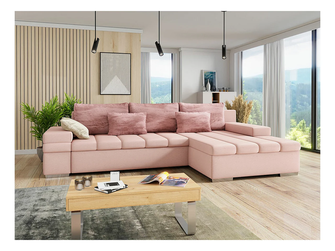 Sofá rinconero Comfivo 169, Rosa, Función de descanso, Almacenaje, 310x175x83cm