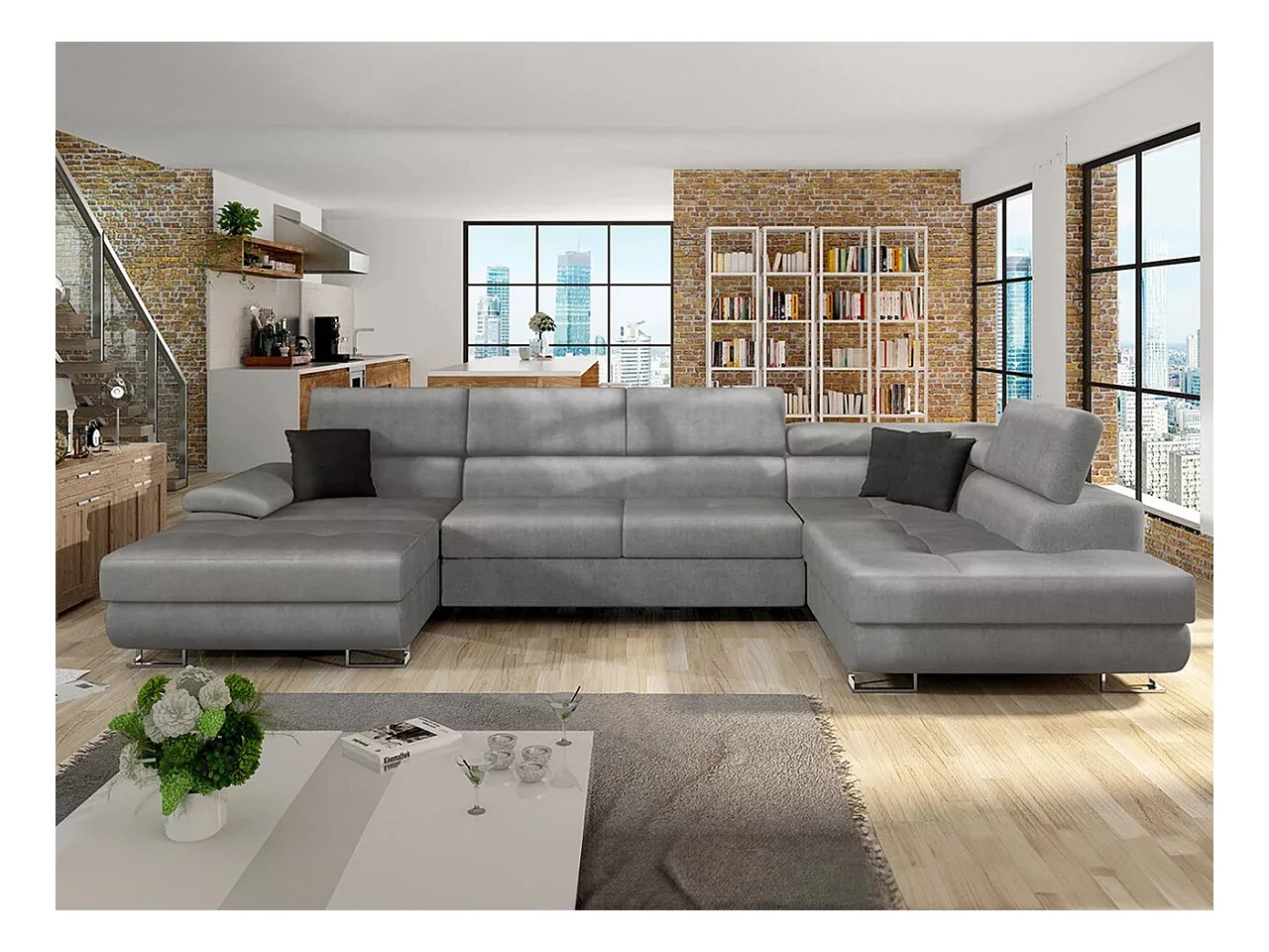 Sofá rinconero Comfivo 190, Gris, Función de descanso, Almacenaje, 345x202x71cm