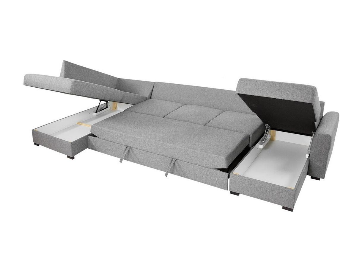 Sofá rinconero Comfivo 191, Gris, Función de descanso, Almacenaje, 370x186x85cm