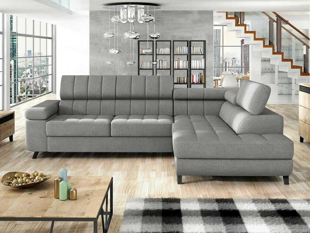 Sofá rinconero Comfivo 112, Gris, Función de descanso, Almacenaje, 265x185x85cm