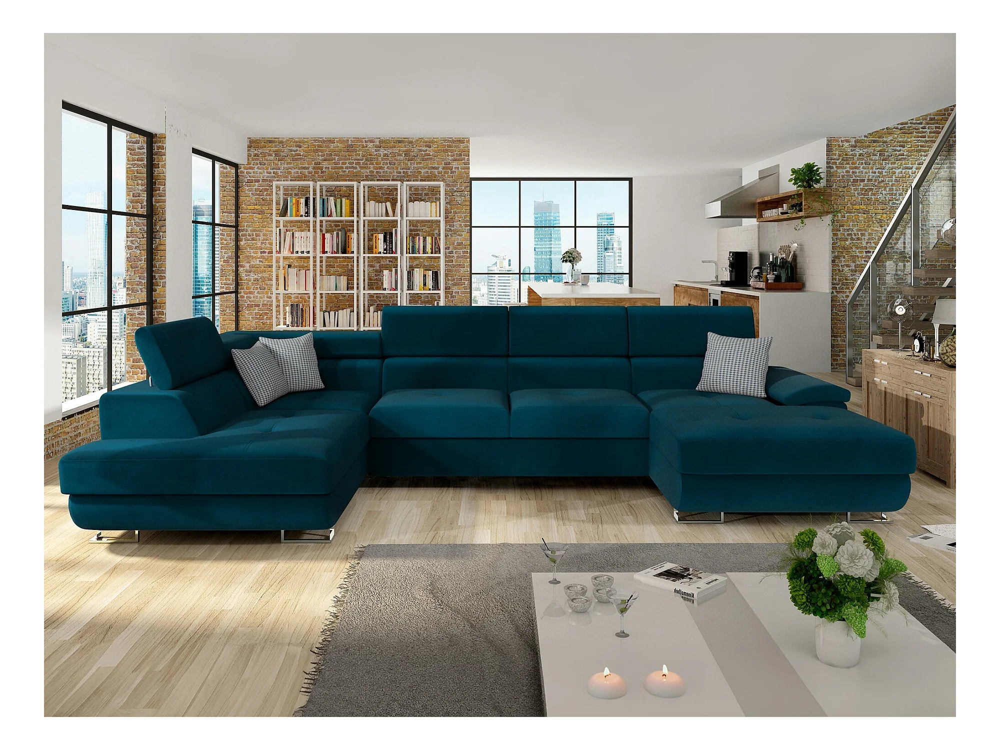 Sofá rinconero Comfivo 241, Turquesa, Función de descanso, Almacenaje, 345x202x71cm