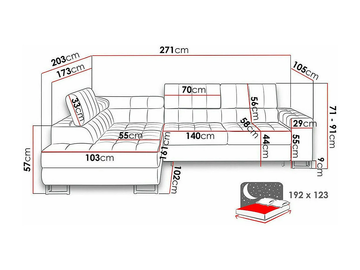 Sofá rinconero Comfivo Anima I, Púrpura, Función de descanso, Almacenaje, 271x203x71cm