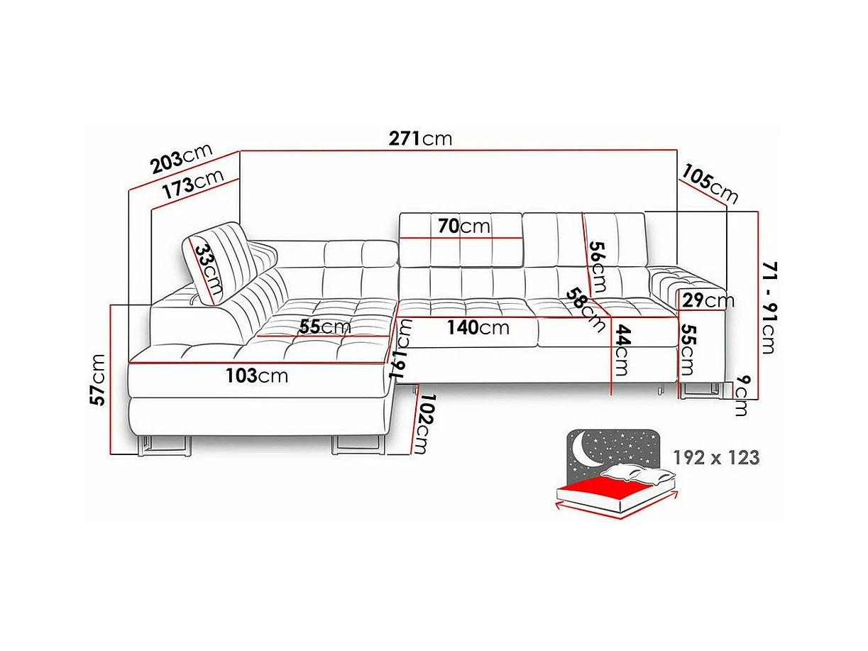 Sofá rinconero Comfivo 247, Turquesa, Función de descanso, Almacenaje, 271x203x71cm