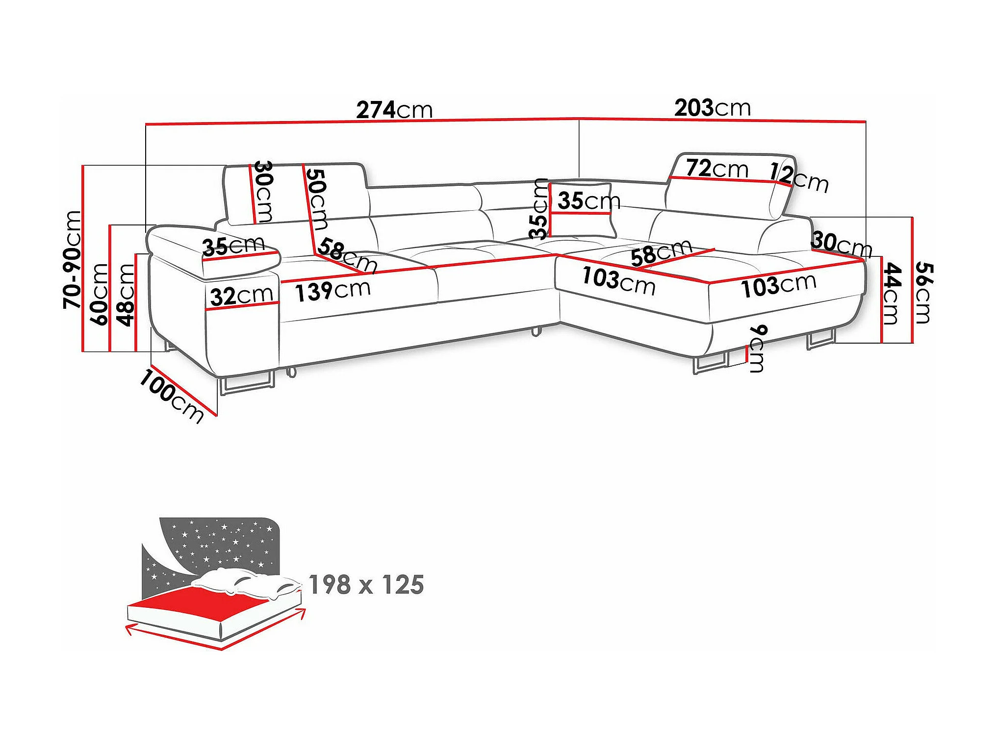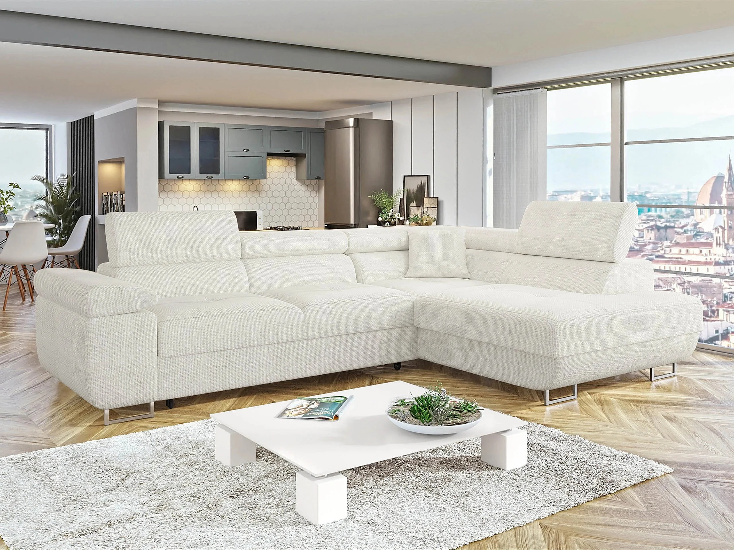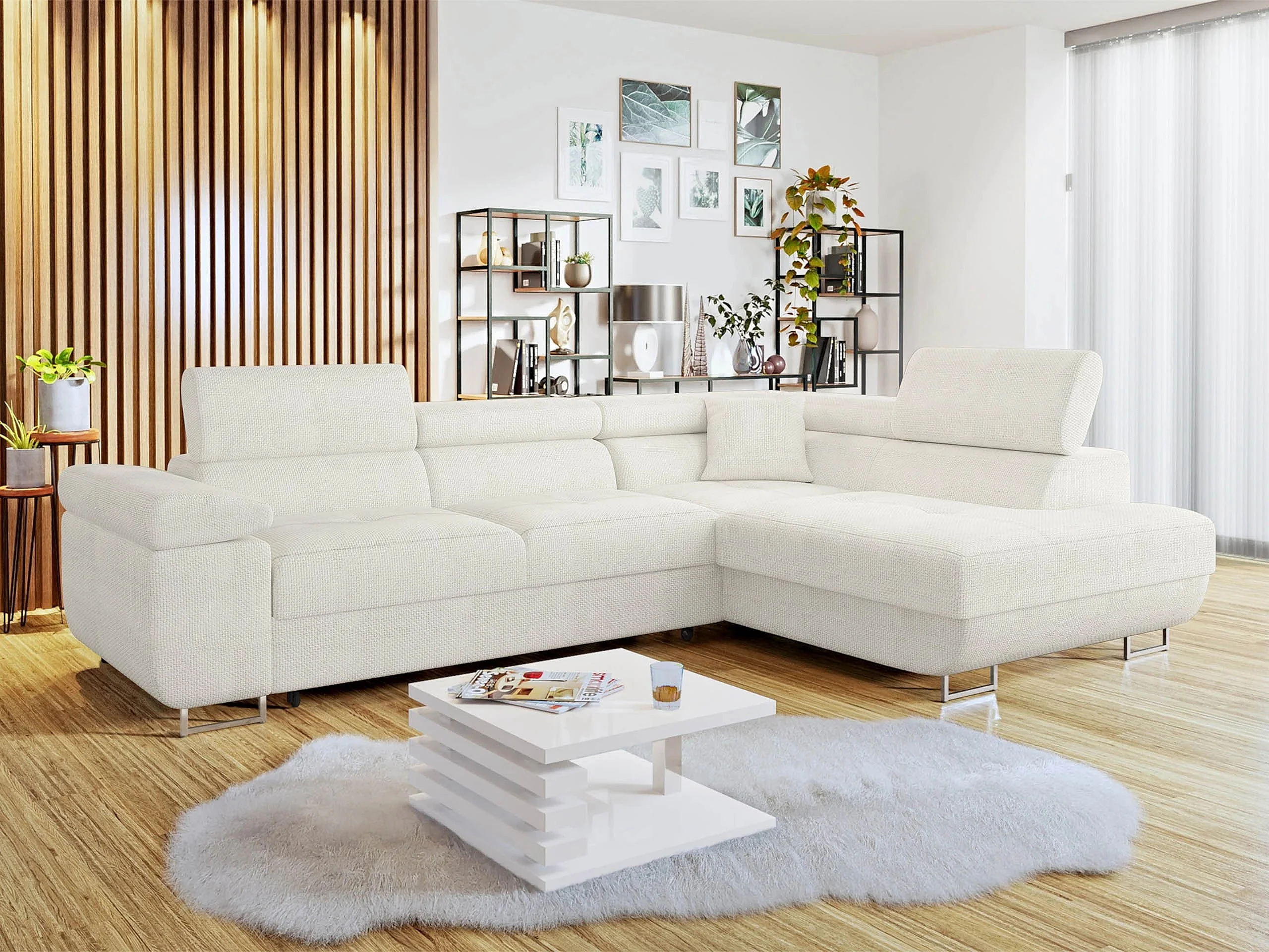 Sofá rinconero Comfivo Vinetum, Blanco, Función de descanso, Almacenaje, 274x203x70cm