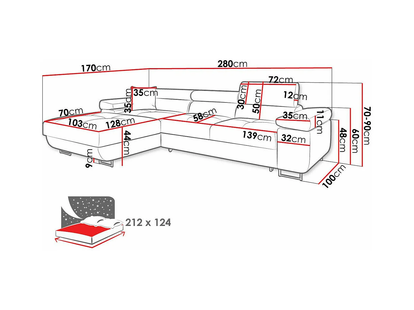 Sofá rinconero Comfivo Eliferu 102, Amarillo, Función de descanso, Almacenaje, 280x170cm