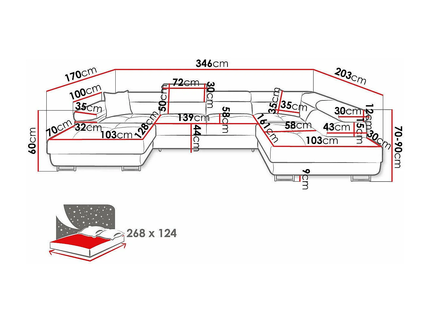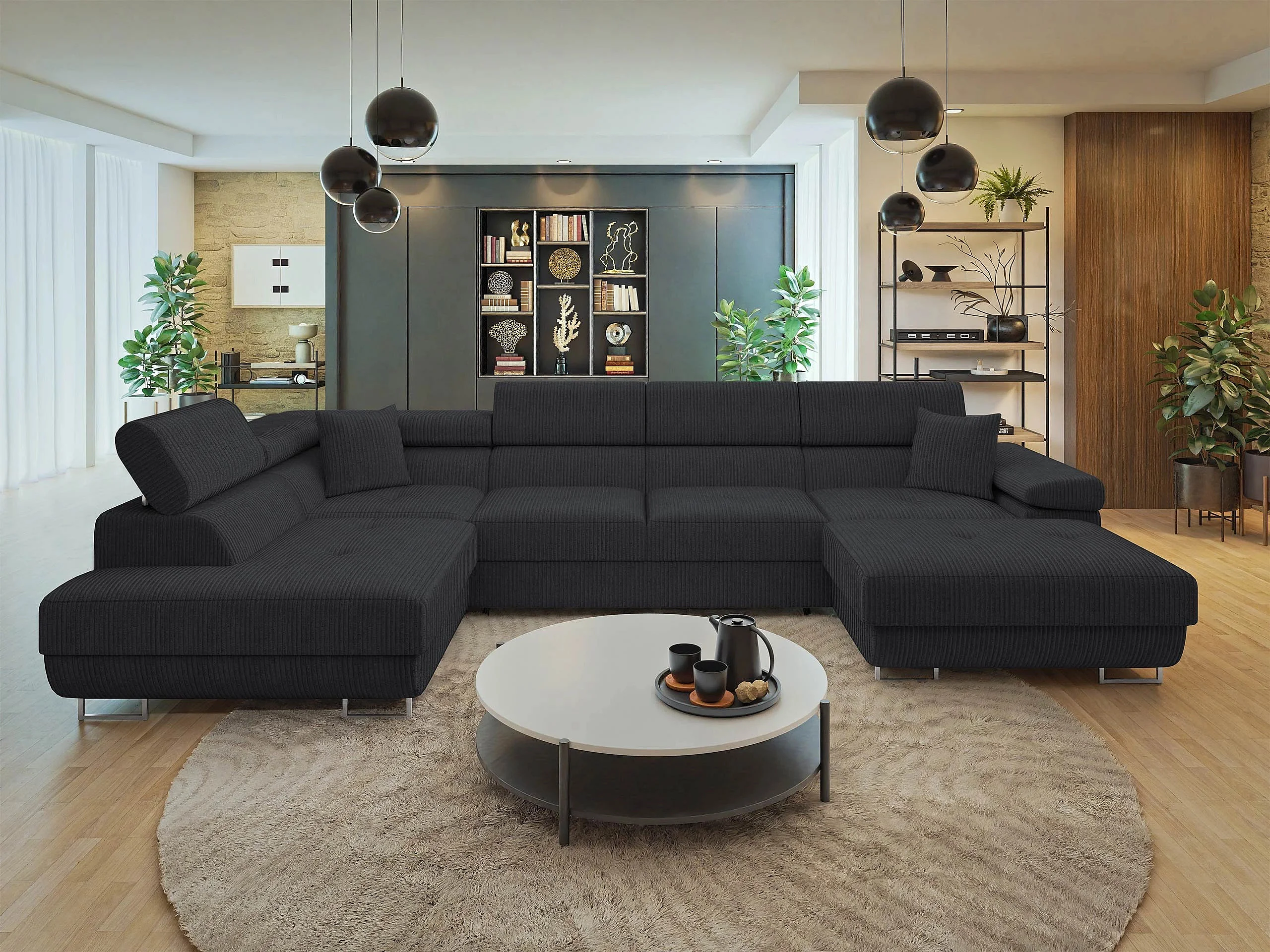 Sofá rinconero Comfivo Vinetum III, Gris oscuro, Función de descanso, Almacenaje, 346cm
