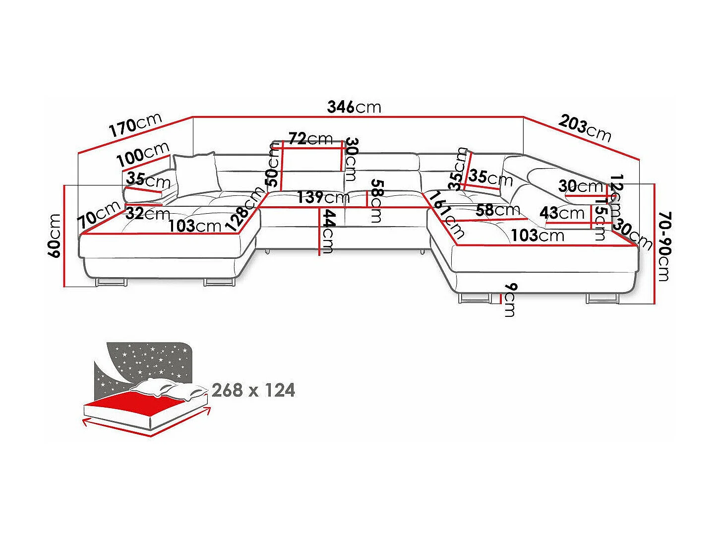 Sofá rinconero Comfivo Vinetum III, Marrón, Función de descanso, Almacenaje, 346x203x70cm
