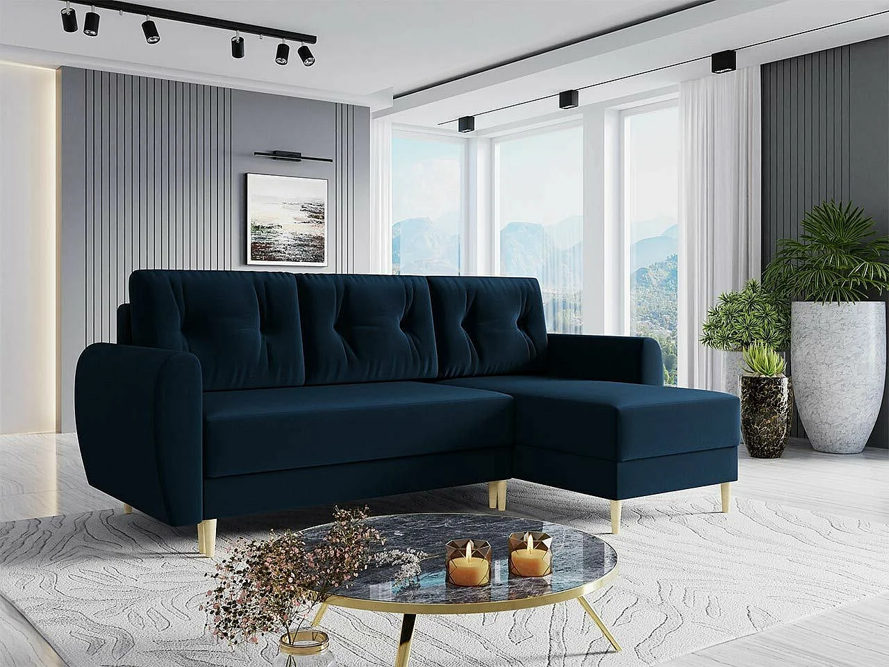 Sofá rinconero Memphis 109, Azul, Función de descanso, Almacenaje, 234x139x95cm