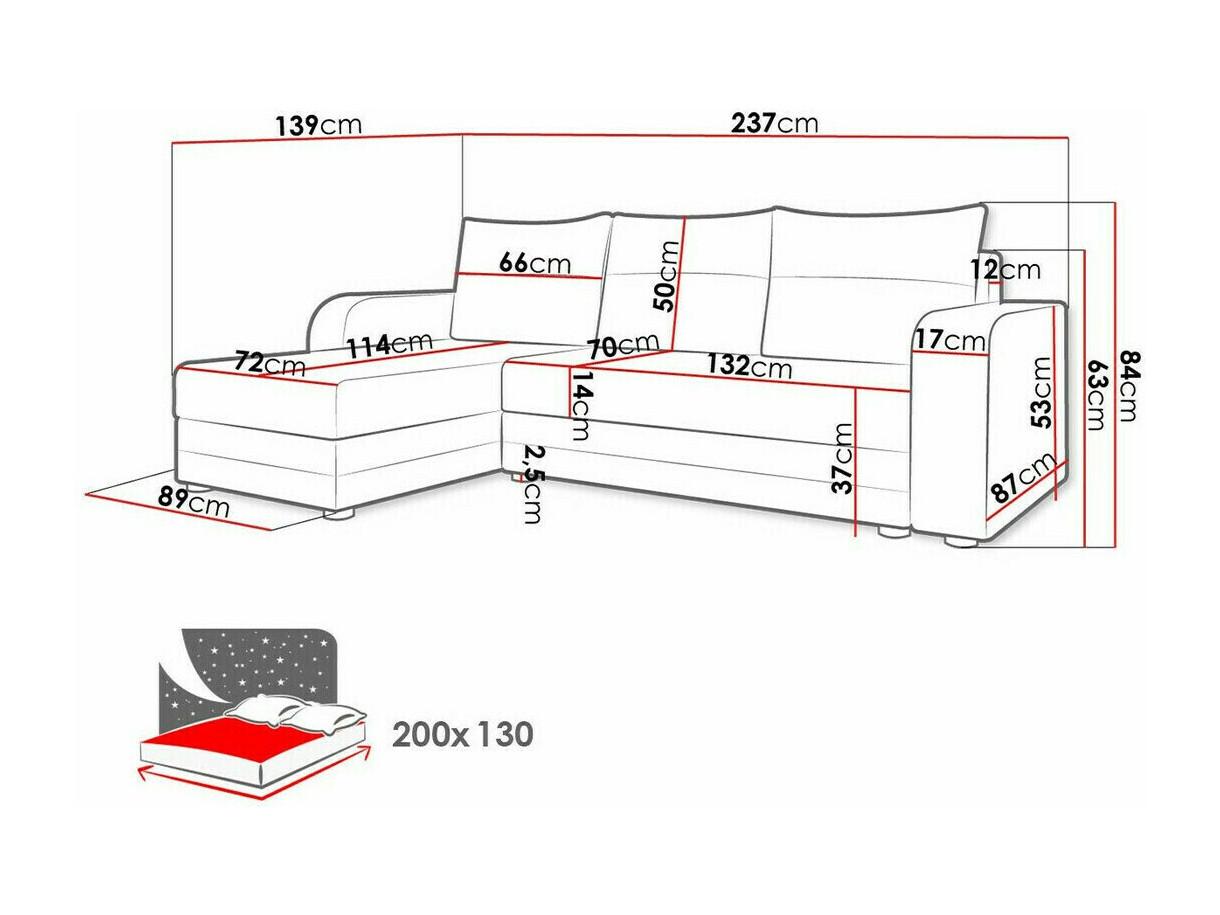 Sofá rinconero Memphis 112, Gris, Función de descanso, Almacenaje, 237x139x84cm